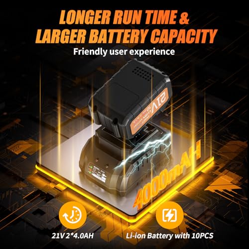 - ใ๐ฎ๐ ๐ฐ.๐ฌ๐๐ต ๐๐ฎ๐๐๐ฒ๐ฟ๐ถ๐ฒ๐ & ๐๐ฎ๐๐ ๐๐ต๐ฎ๐ฟ๐ด๐ฒ๐ฟ -- ๐๐ฟ๐ถ๐ฒ๐ป๐ฑ๐น๐ ๐จ๐๐ฒ๐ฟ ๐๐ ๐ฝ๐ฒ๐ฟ๐ถ๐ฒ๐ป๐ฐ๐ฒใ-- The rechargeable compact wrench is equipped with a 2 x 4.0Ah battery pack, (21V battery contains 10 pieces), the battery life is over 70.5%, which can keep the wrench working for a long time, more efficient than the 2.0Ah battery pack with only 5 batteries, and equipped with a charger that can be quickly charged in one to two hours, allowing you to work easily!!!