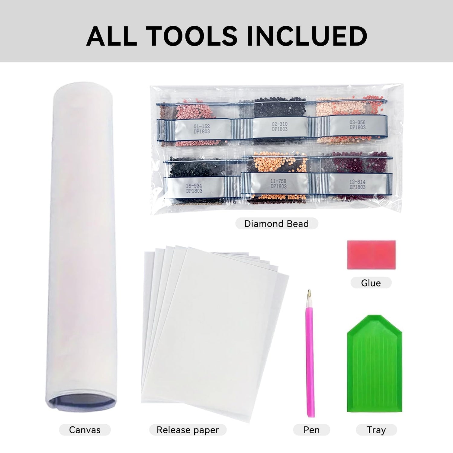 - 【Diamond Art Kits for Adults】Each diamond art kits comes with all tools in need. Following tools are Included: 1*HD painting canvas, 1*diamond pen, 1*cube diamond tray, 1*red glue clay (2cm *4cm), 5* diamond painting release paper, and enough colorful round diamonds.For each diamond art painting kit we'll provide 20% diamond more than need