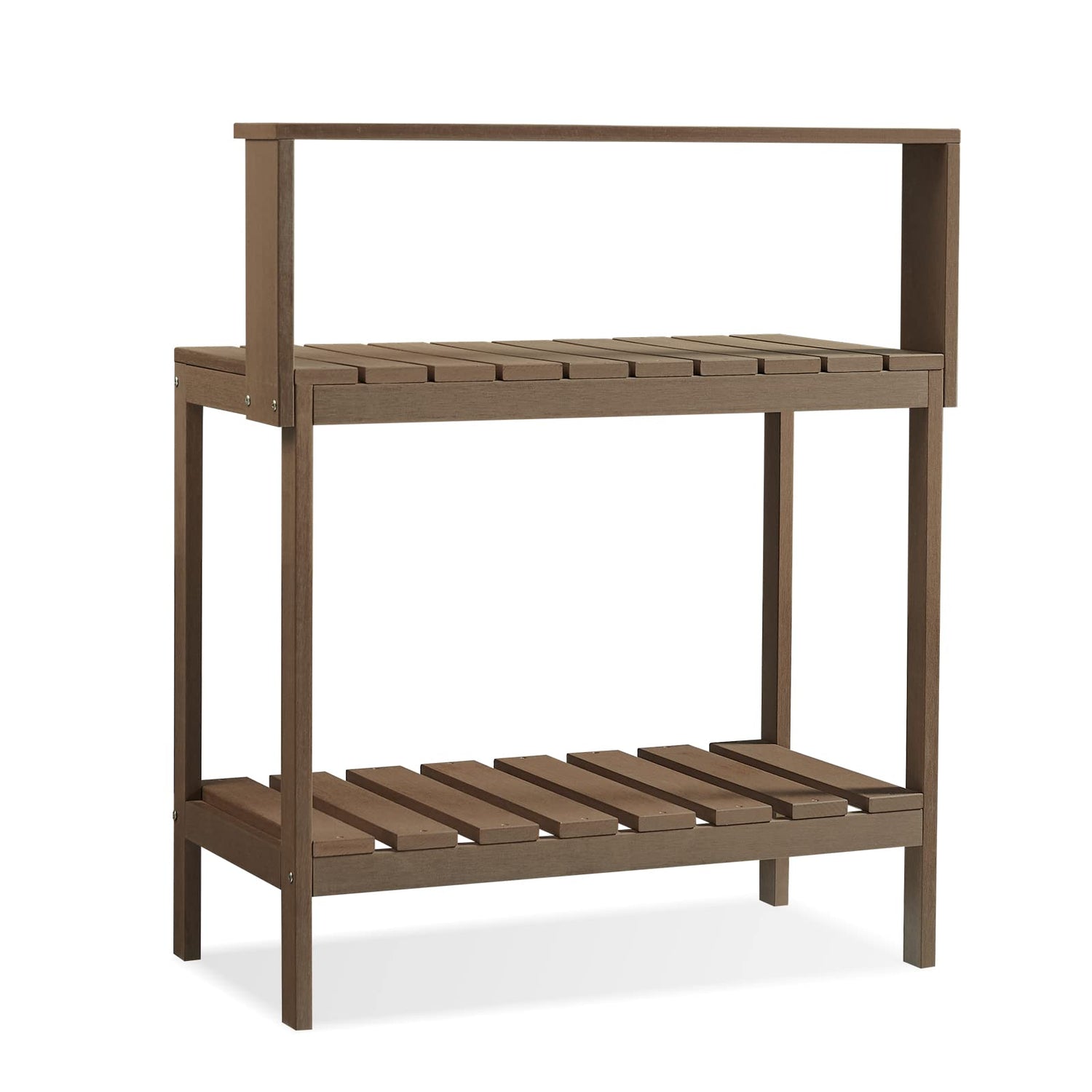 Psilvam Outdoor Poly Lumber Potting Bench, Polystyrene Garden Table with Storage Shelves, All-Weather Patio Work Station for Gardening(Brown)