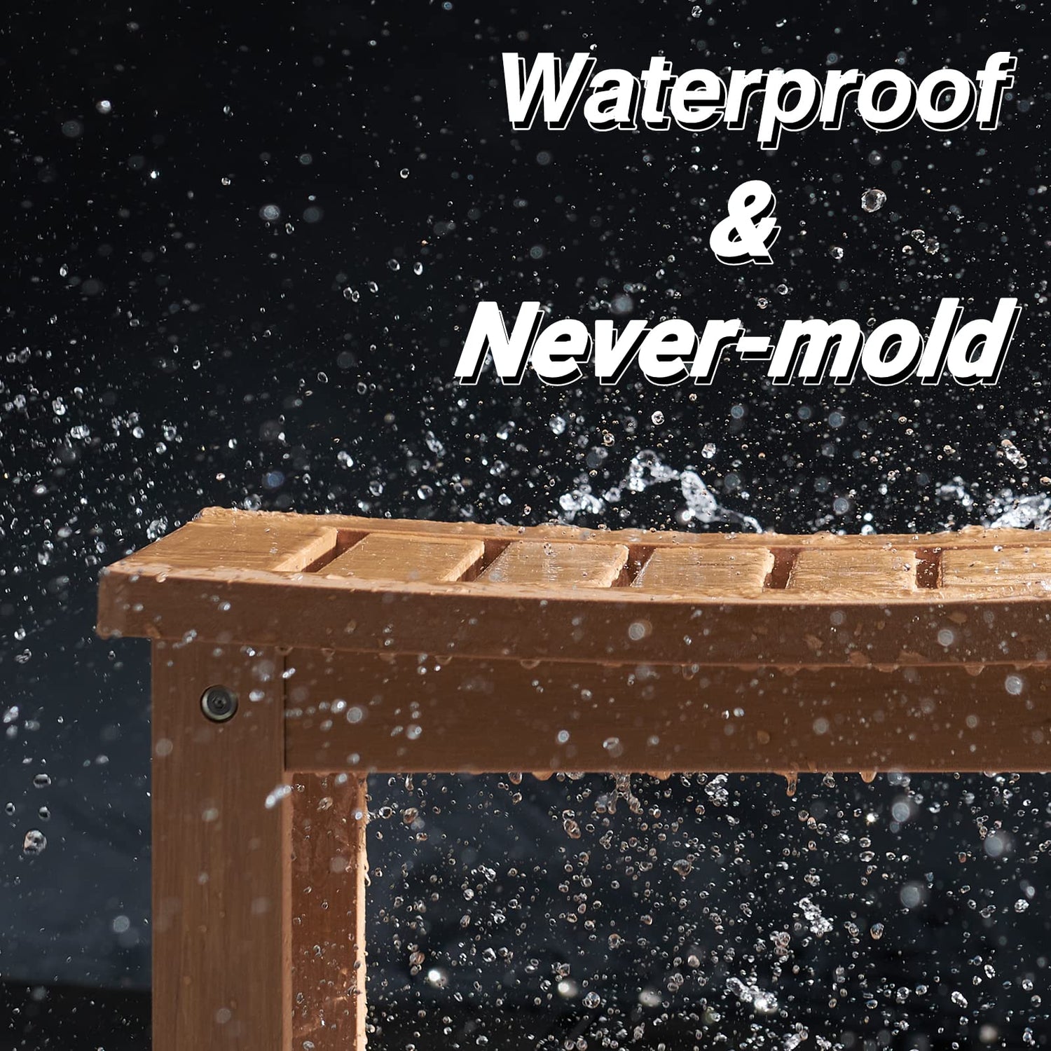 Psilvam Poly Lumber Shower Bench, Shower Stool with Storage Shelf, Water Resistant & Non-Slip Design Shower Seat for Bathroom, Living Room, Bedroom 21 1/4"×14"×18 1/2"(Teak Color)