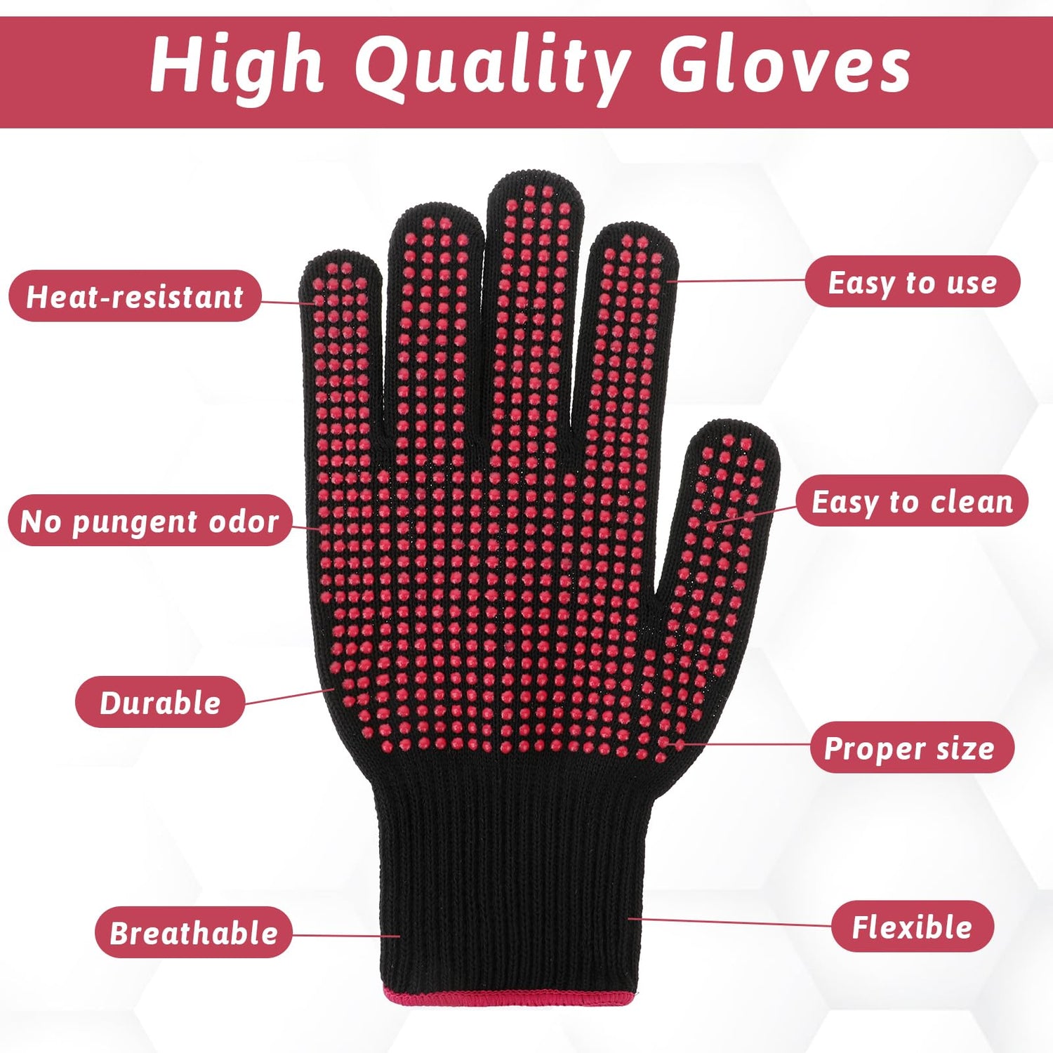 2.The surface of our heat gloves for hair styling has silicone bumps, flat iron gloves to protect your hand are very anti-slip and can provide better control to avoid items from slipping from the hands.