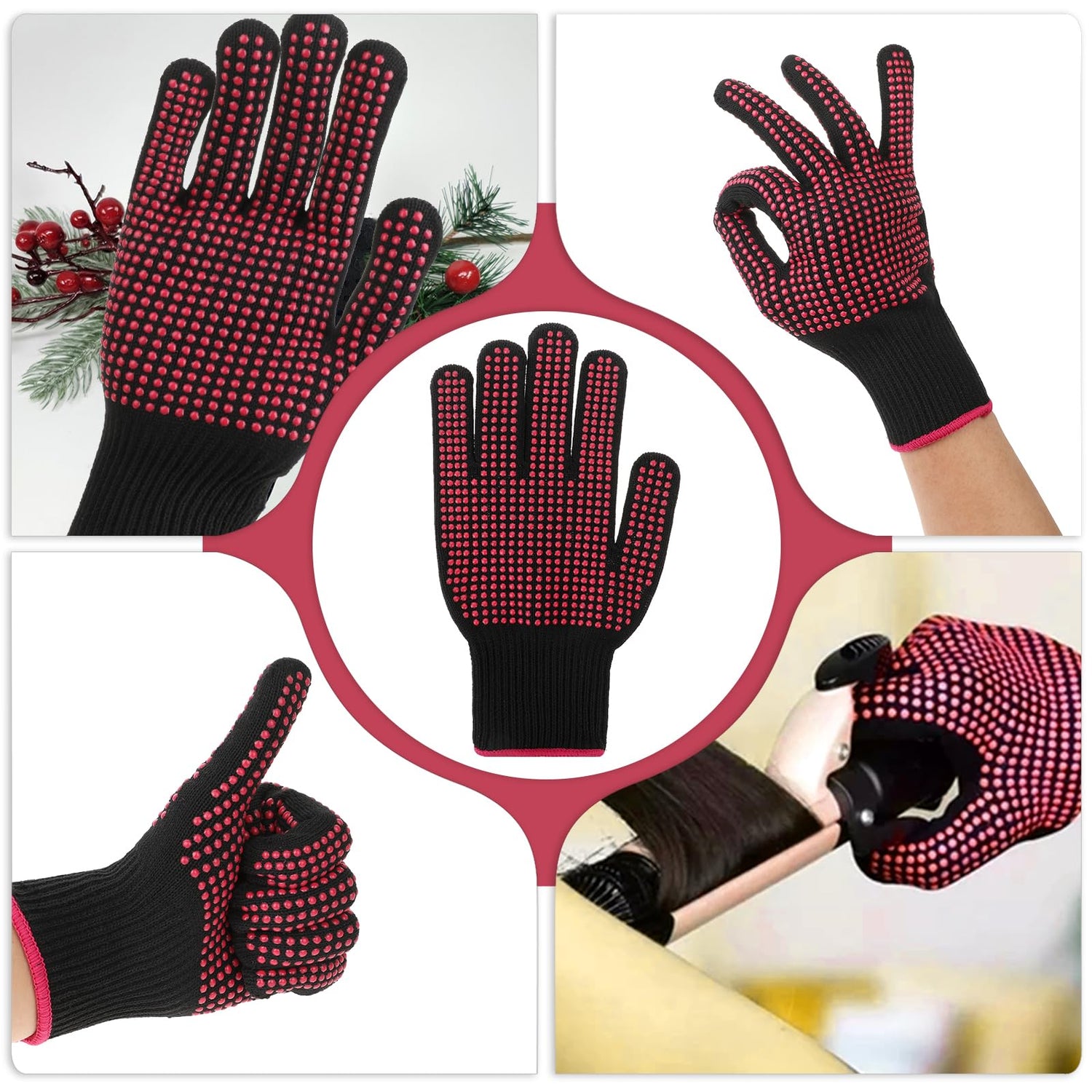 4.Our ironing gloves have multiple uses. Oven glove can not only be used to insulate hair styling products such as curling irons, hair straighteners, hair dye combs, cooking gloves heat resistant but also can be used to insulate irons, ovens, hot pots, and other daily necessities.