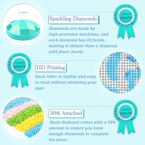 - Easy to Read: Diamond art numbers and symbols on the HD canvas are clear and easy to read. The drills adhered to the canvas without difficulty, and the diamonds stays on very good, wouldn’t fall off