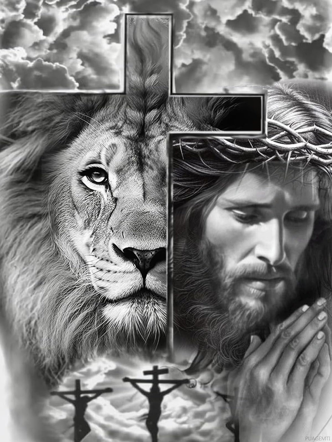 PUAGEMTI Jesus and Lion Jesus Christ Jesus Lion Jesus Christian Jesus Religious 5D Adult Diamond Art,DIY Diamond Art Painting Kits for Decor Canvas 30x40cm