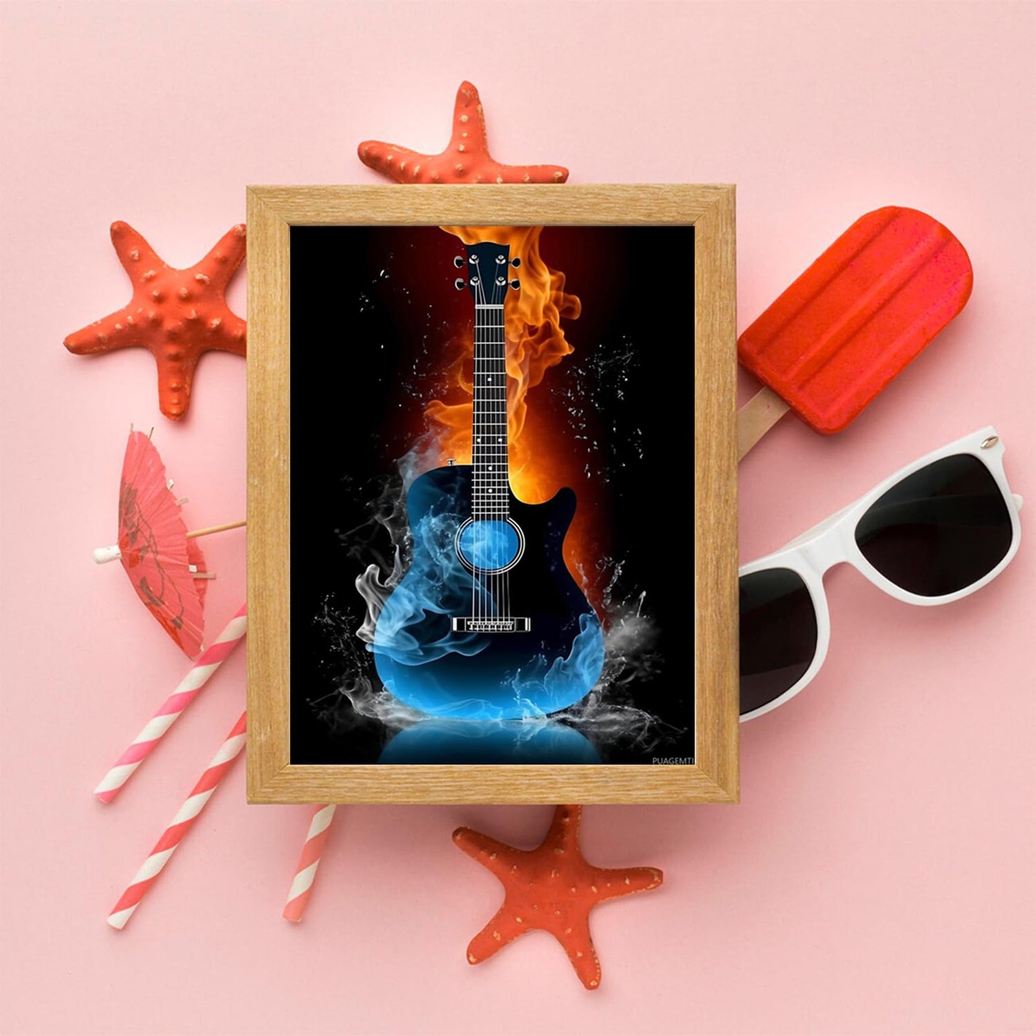 PUAGEMTI Round Full Music Diamond Painting Kits DIY Ice and Fire Guitar Diamonds Art Guitar Crystal Rhinestone Cross Stitch for Home Wall Decor, Diamond Art 12x16 inch