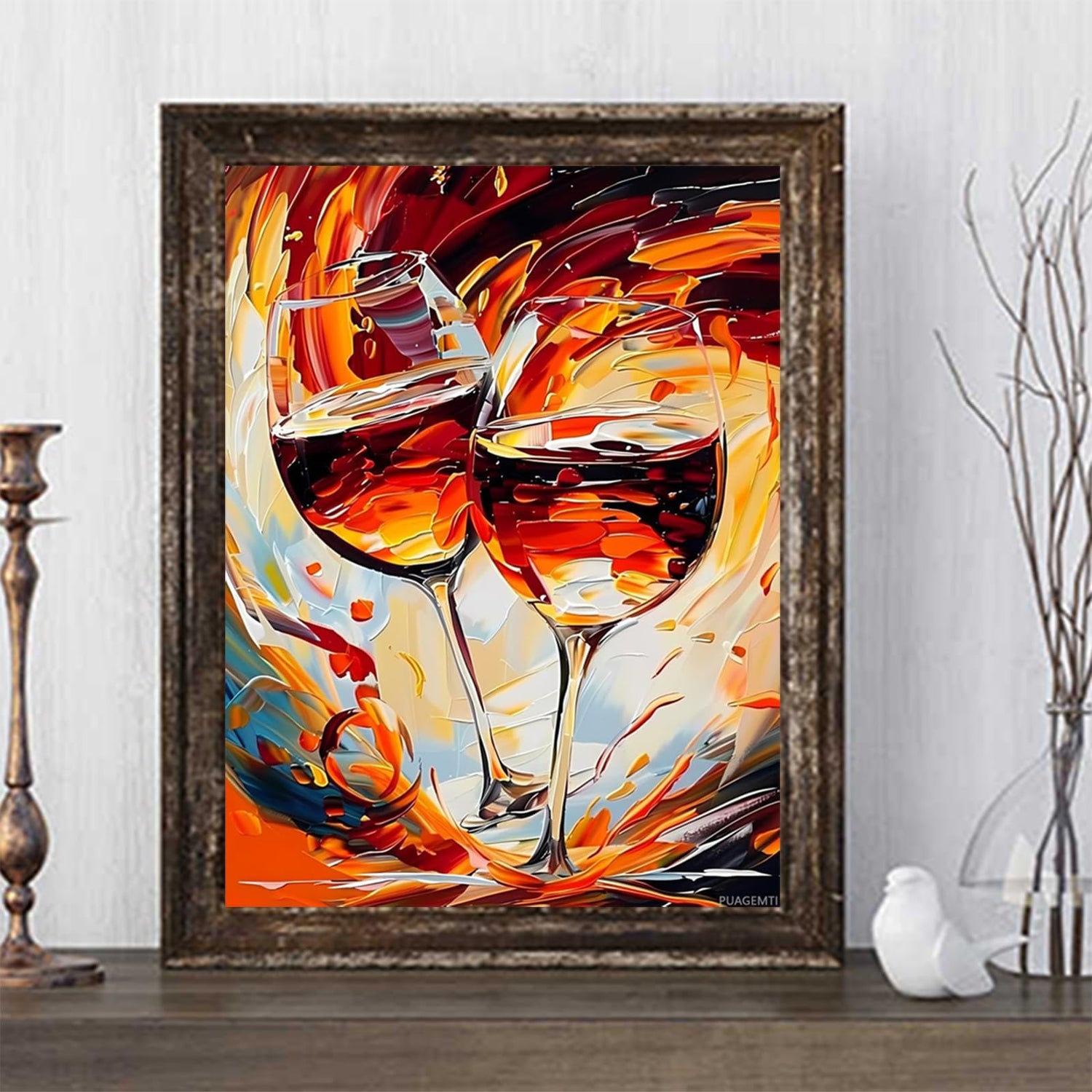 PUAGEMTI The Clinking of The Wine Glasses Diamond Painting Kits, Wine Glass Diamond Art Kit for Adults, 5D Diamond Dots Full Drill Round Wall Decor Gift 12x16 inch