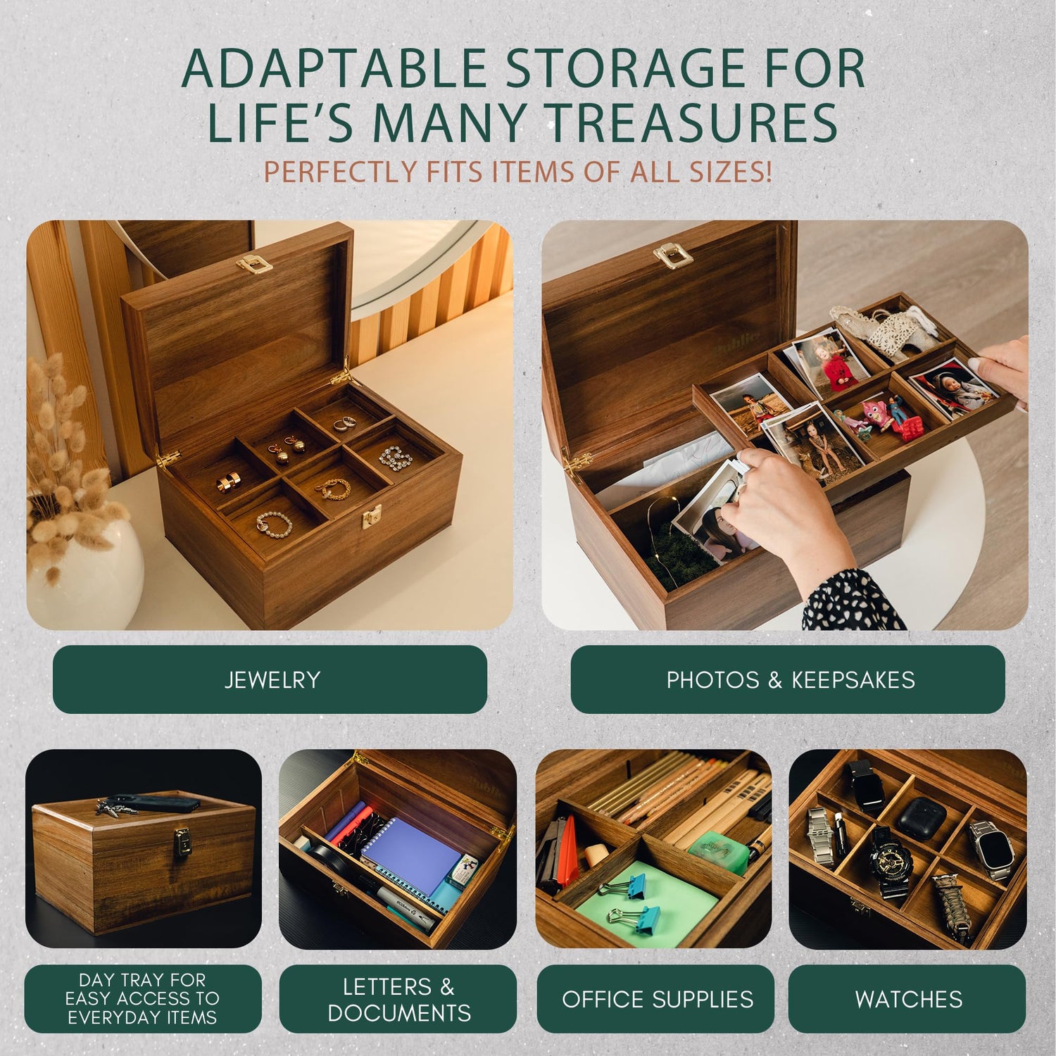 - ✔️ Large Size to Preserve All Your Precious Moments: Measuring 12 x 8 x 6 Inches this wood box is designed to safeguard your most treasured memories .Ideal for Jewelry, Photos, Wedding and Baby Keepsakes, Watches, Letters, Stationery, Arts and Crafts
