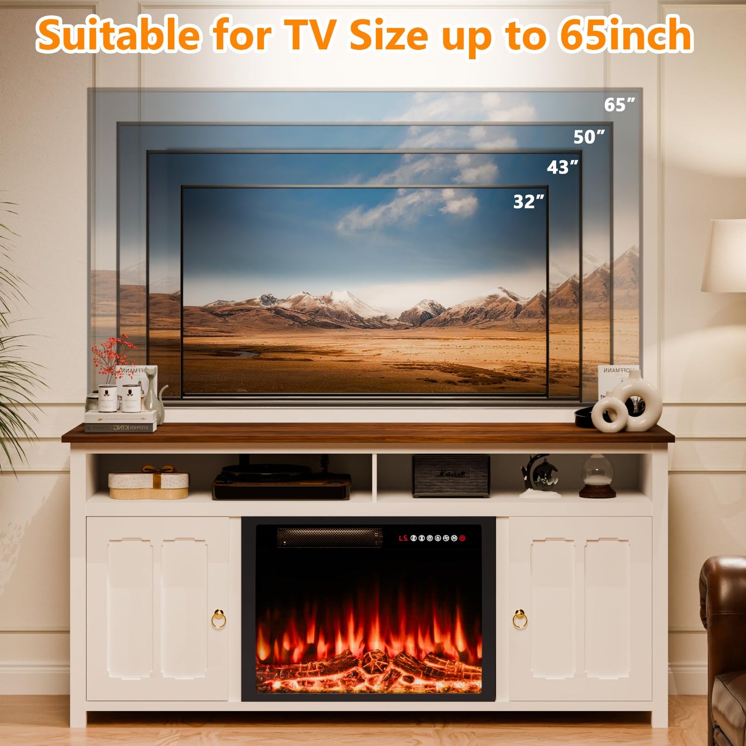 Details: PUKAMI Fireplace TV Stand for TVs up to 65",29" Tall Farmhouse Entertainment Center with 23" Fireplace,58" Media Console Cabinets for Living Room with Storage Cabinets and Adjustable Shelves