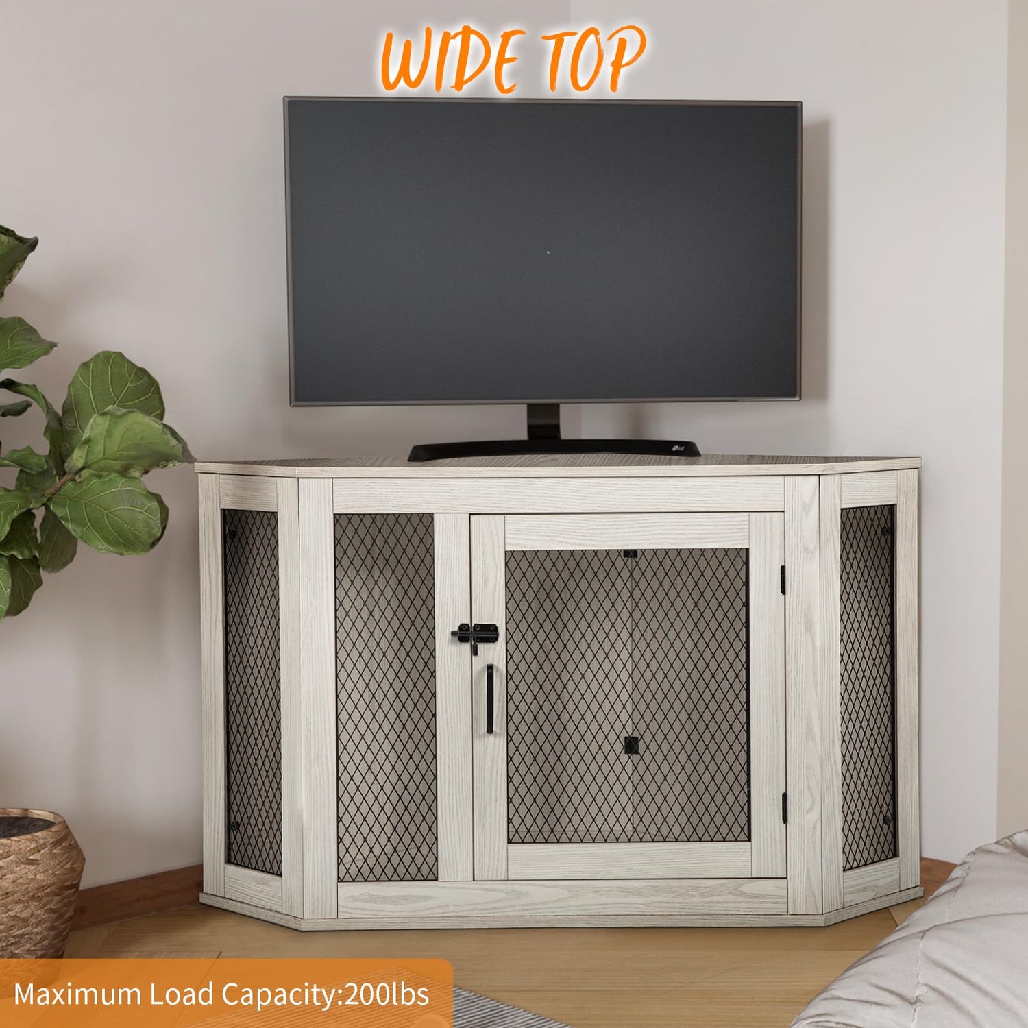 PUKAMI Corner Dog Crate Furniture,44/52inch Wooden Dog Kennel Furniture with Mesh,Decorative Wood Dog House for Indoor use,Dog Crate for Small/Medium/Large Dog,Perfect for Limited Room