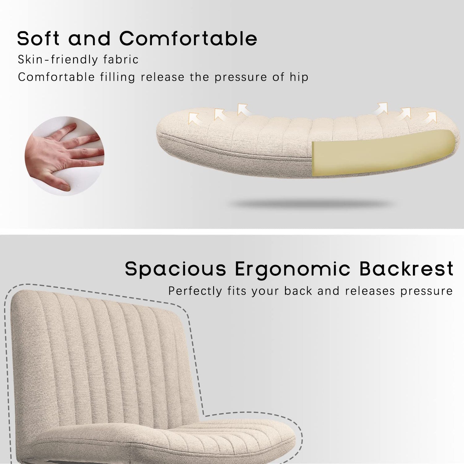 PUKAMI Criss Cross Chair,Comfy Cross Legged Office Desk Chair No Wheels,Cute Makeup Vanity Chair,Fabric Modern Swivel Height Adjustable Mid Back Wide Seat Computer Task Chair for Home Office(Beige)
