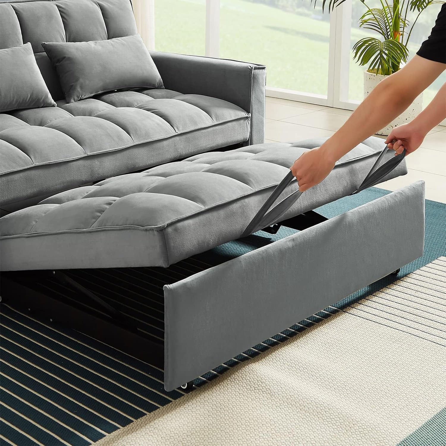 Pull Out Couch 3 in 1 Sleeper Loveseat Convertible, 55'' 2-Seater Sofa Bed with Throw Pillows, Perfect for Living Room and Office, Grey