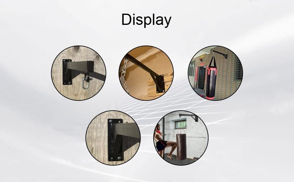 - [Considerate Design] JP Punching bag wall mount bracket (18" from Wall) with a strong strength hanging hook connector, it allows you to attach punch bay onto this bracket easily. This boxing bag mounting bracket comes with fittings, easy to install it onto wall firmly and stably.