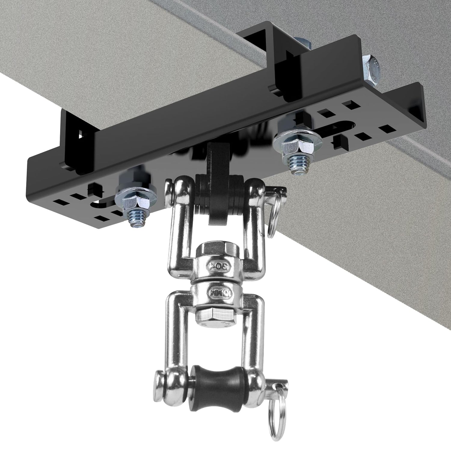 - Optimized Design】: 1) Punching bag hanger U-shaped groove structure design,could hold up to 2000 lbs.+ weight capacity. 2) Heavy bag mount with 360°+180°: 360° swivel+180° swing set hook creating a wider range of using like hanging heavy boxing punching bag,playgrounds swing set, porch swings,hammock chairs, indoor swing nd so on