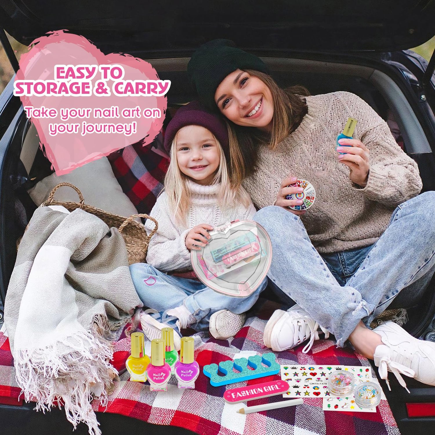 • DIY Your Style Nail Art: Includes everything your little girl needs to create fun and fancy nail designs. With nail dryer with organizer, 5 colors kids nail polish, nail stickers, colorful DIY decorative gems, nail file and separator.