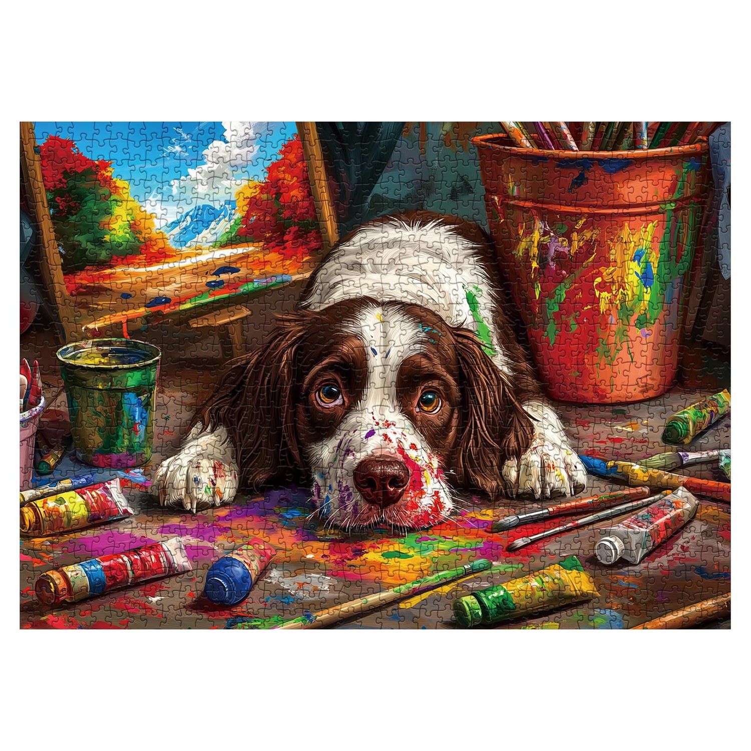 Puppy Painting Puzzle for Adults 1000 Pieces, Funny Dog Jigsaw Puzzle, Cute Animal Puzzle