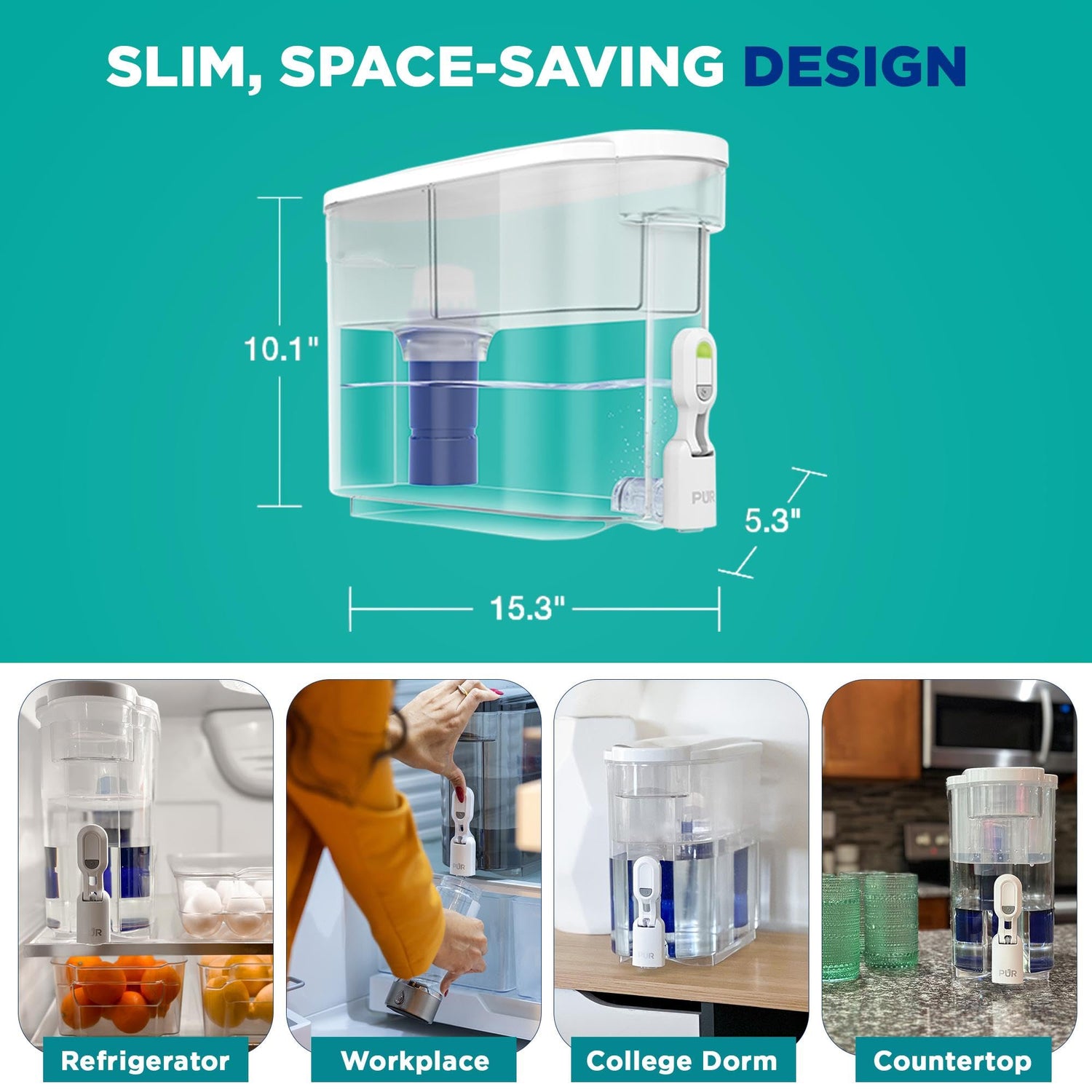 - Ultimate Convenience - Slim yet sturdy and just like a PUR large water filter pitcher, it’s dishwasher friendly and fits in the refrigerator or on the countertop. The smart indicator light reminds you to replace the filter for optimal filtration