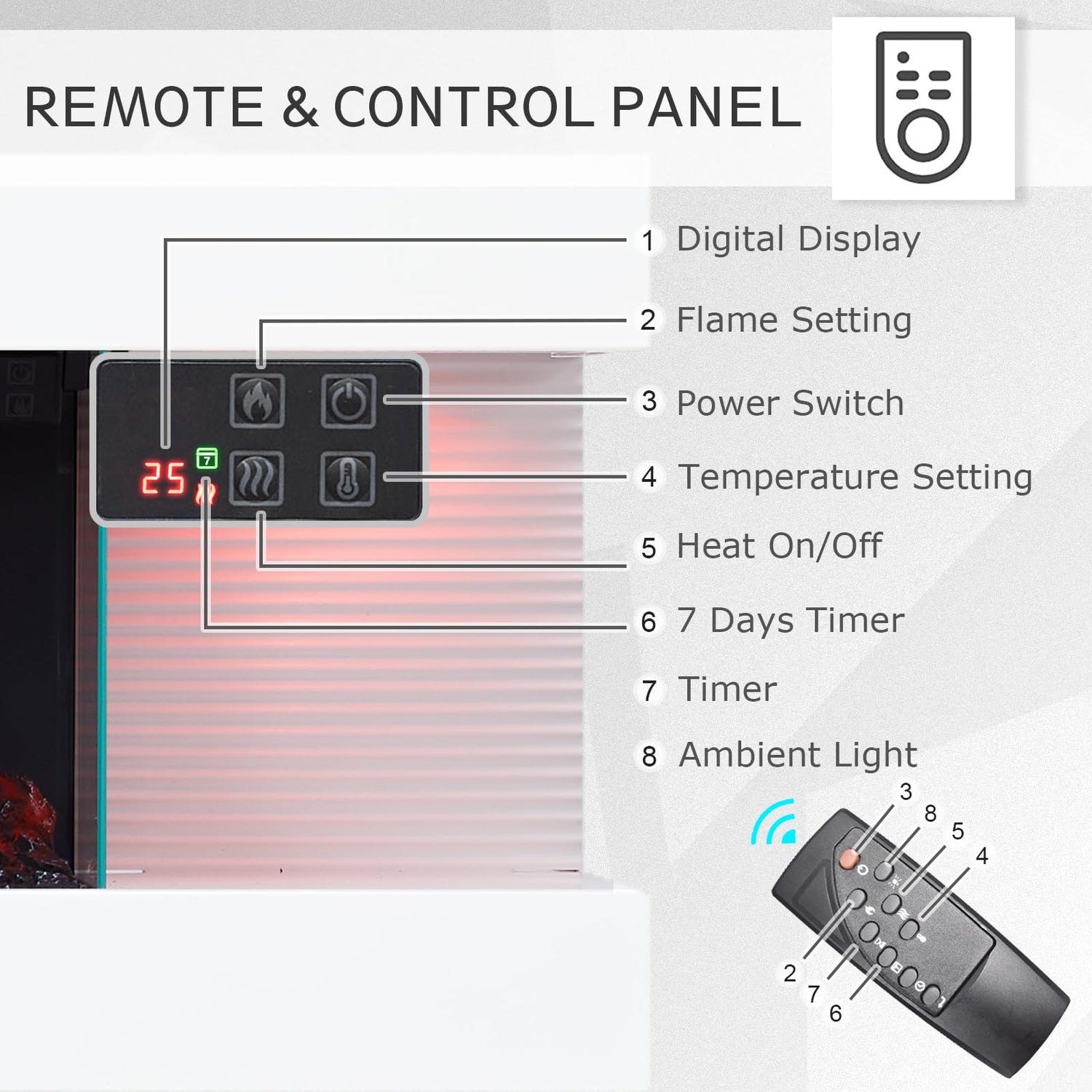 - Temperature set from 60° - 82℉, warmth for up to 400 sq. ft. used with or without the flames. Timer and week timer added for easy use.