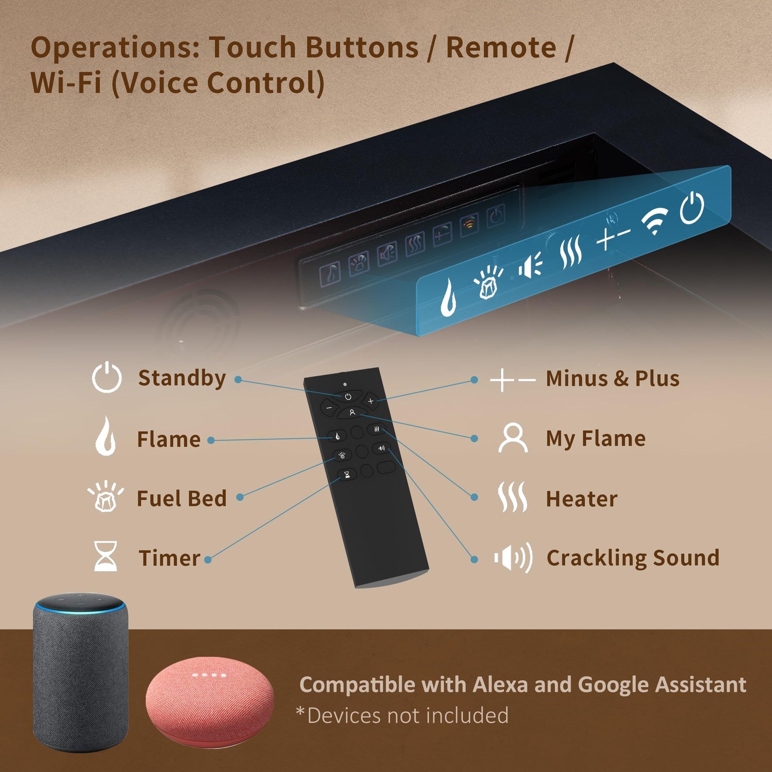 Details: PuraFlame BERNICE 72 Inch Smart Linear Electric Fireplace - Clean Hidden Vent Design, Flame with 9 Colors, Recessed in-Wall or Wall-Mount or Free Standing, Compatible with Alexa and Google Assistant