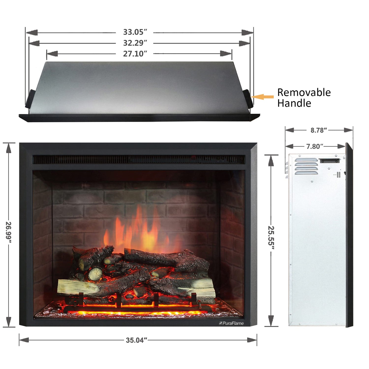 PuraFlame Western Electric Fireplace Insert with Fire Crackling Sound, Remote Control, 750/1500W, Black, 33 1/16 Inches Wide, 25 9/16 Inches High