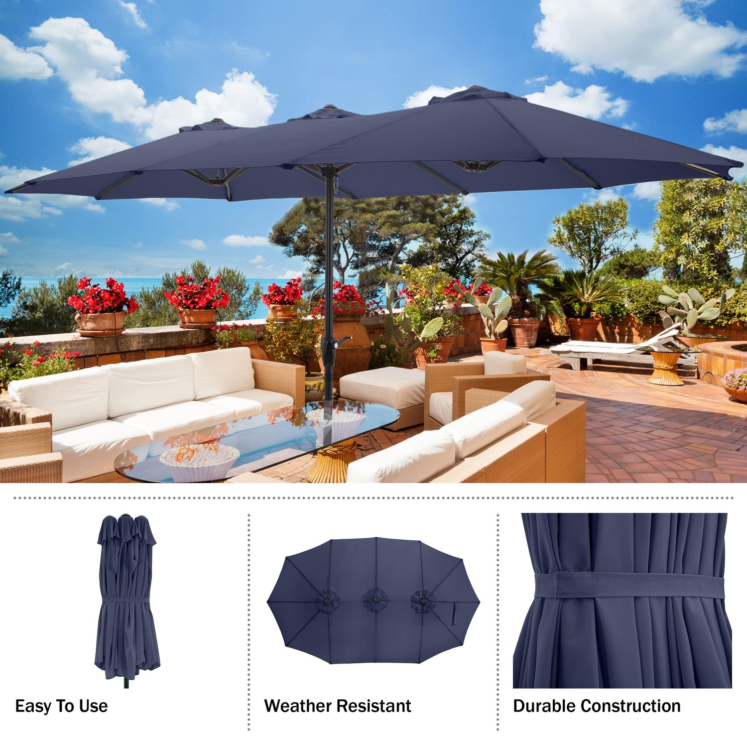 Pure Garden 50-LG1284 15' Double Sided Market Umbrella, Navy Blue