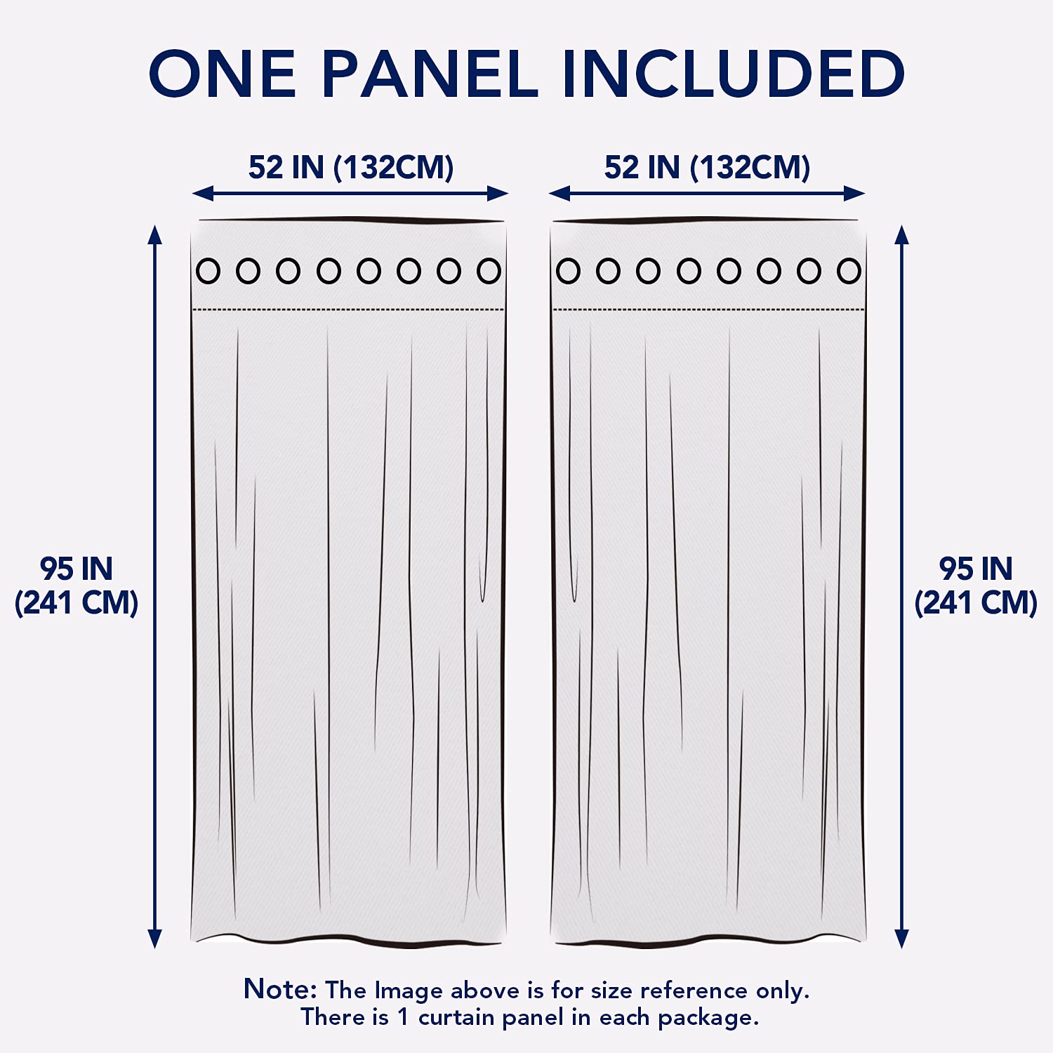 - PACKAGE CONTENT & PRODUCT DIMENSIONS: Our weatherproof outdoor curtains are sold in panel (1 panel in each package). Each curtain panel measures 52” width by 95” Length, a set of 2 curtain panels measures 104” width by 95” Length. The curtains are constructed with silver rust-proof grommets with inner diameter of 1.6”