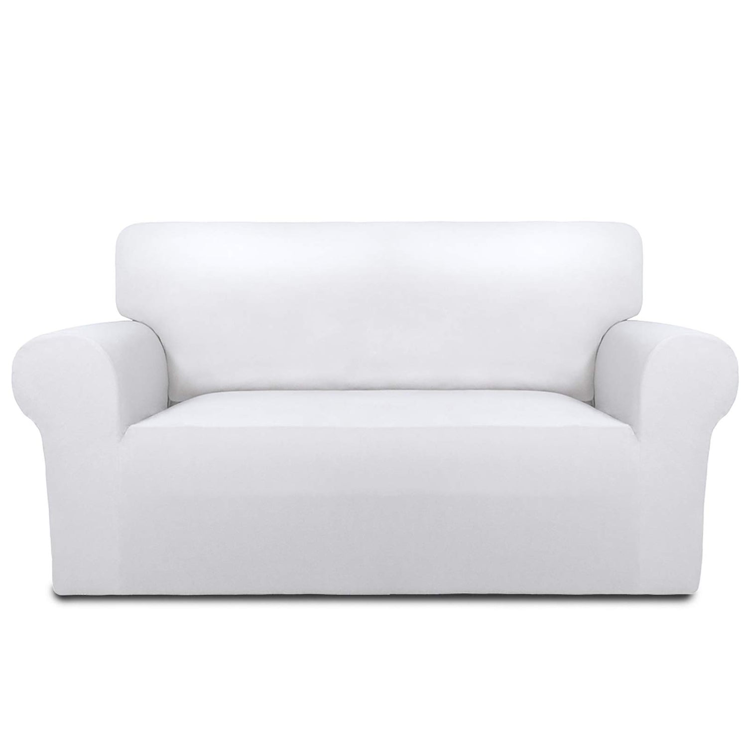 PureFit Super Stretch Sofa Slipcover – Spandex Non Slip Soft Couch Sofa Cover, Washable Furniture Protector with Non Skid Foam and Elastic Bottom for Kids, Pets (Loveseat, White