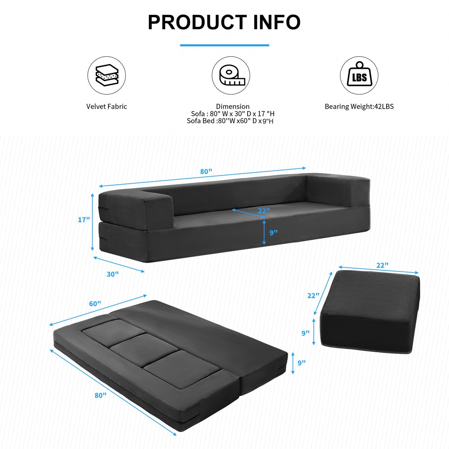 - 【Easy to Assemble】The pull-out sleeper bed sets up quickly and easily.This item arrives in one-package . Before assembly, ensure to check the completeness of the couch parts and hardware. Follow the installation manual for a swift and hassle-free assembly.