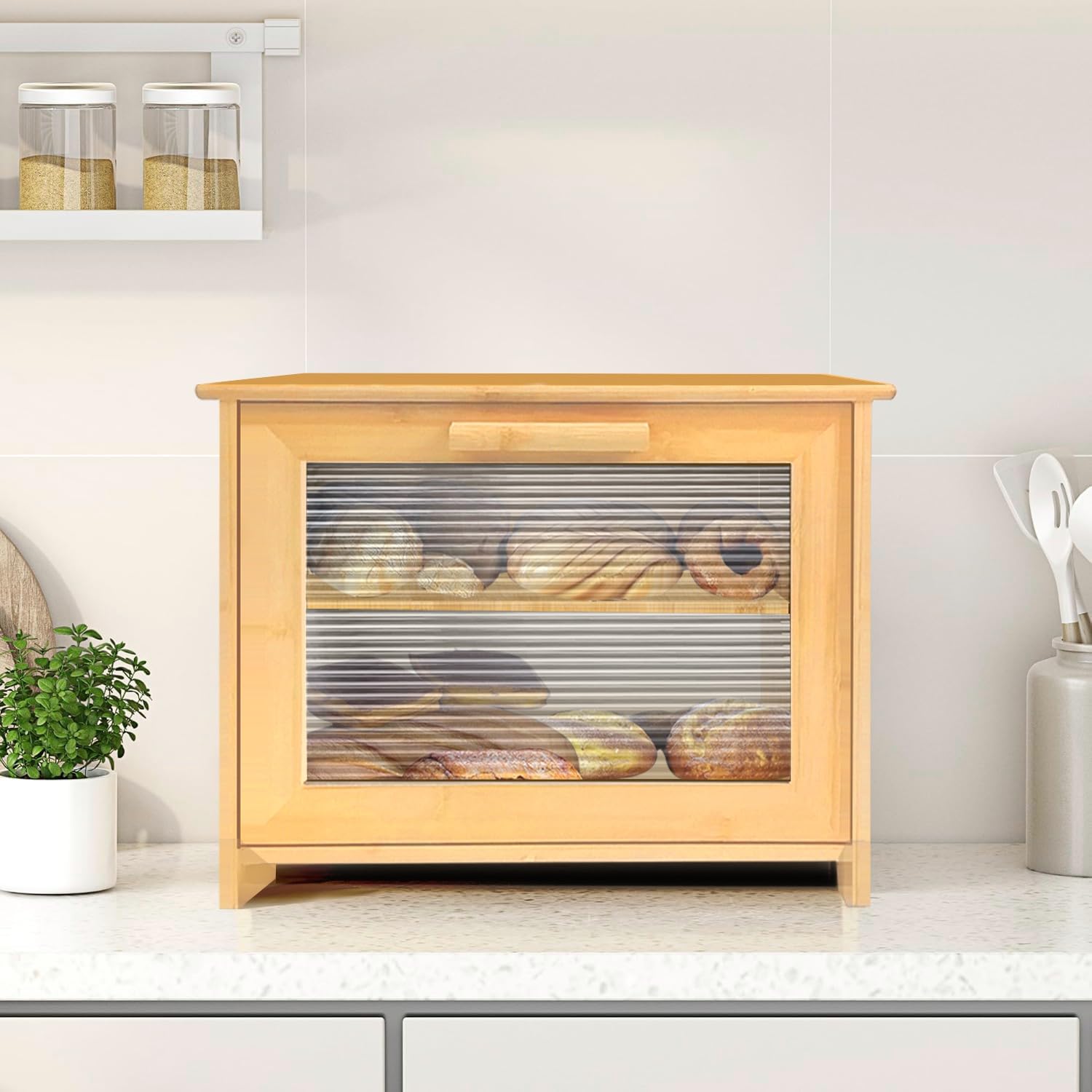 - Bread Box for Kitchen Countertop, Large Bread Box for Homemade Bread, 2 Layer Wood farmhouse Breadbox Organizer for Kitchen Counter Corner, Cabinet, Pantry, Cupboard