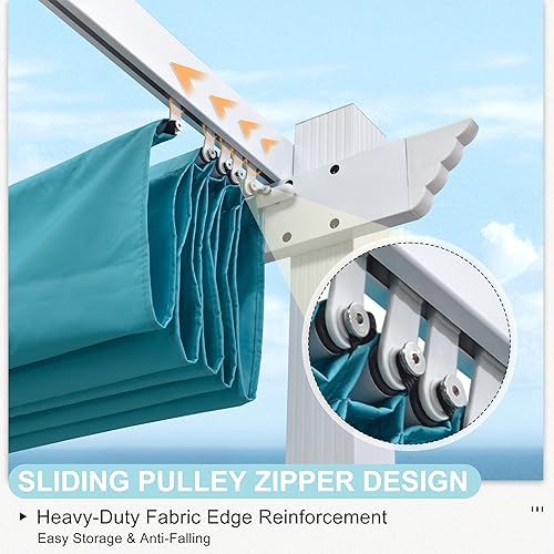 PURPLE LEAF 10' X 12' Outdoor Retractable Pergola with Sun Shade Canopy Cover White Patio Metal Shelter for Garden Porch Yard BBQ Beach Gazebo Grape Trellis Pergola, Turquoise Blue