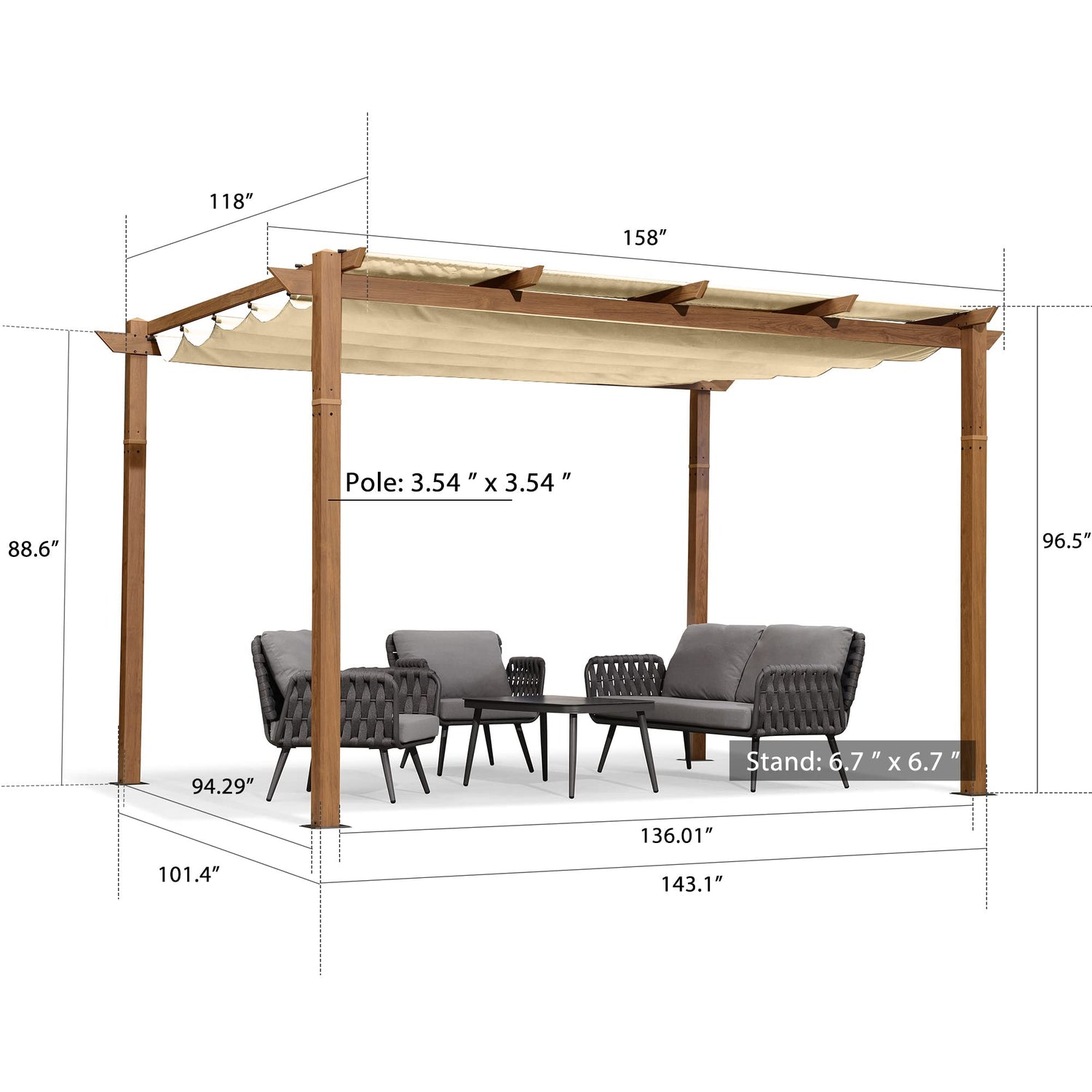 PURPLE LEAF 10' x 13' Outdoor Retractable Pergola with Sun Shade Canopy Patio Metal Shelter for Garden Porch Beach Pavilion Natural Wood Grain Frame Gazebo Modern Yard Grill Pergola