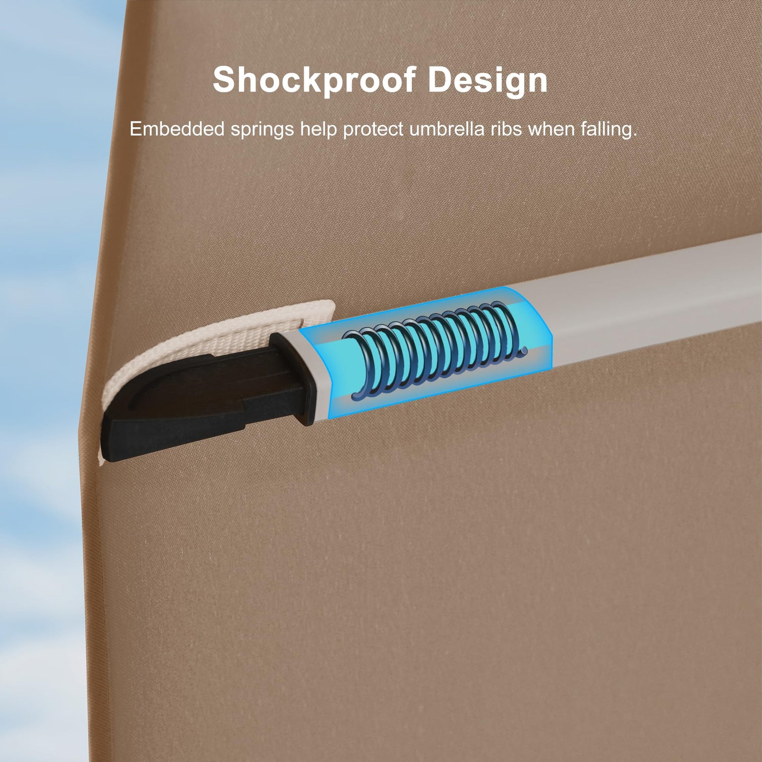 - All-aluminum umbrella bones and 8 heavy-duty ribs, anti-oxidation spray painted, maintain a long period life