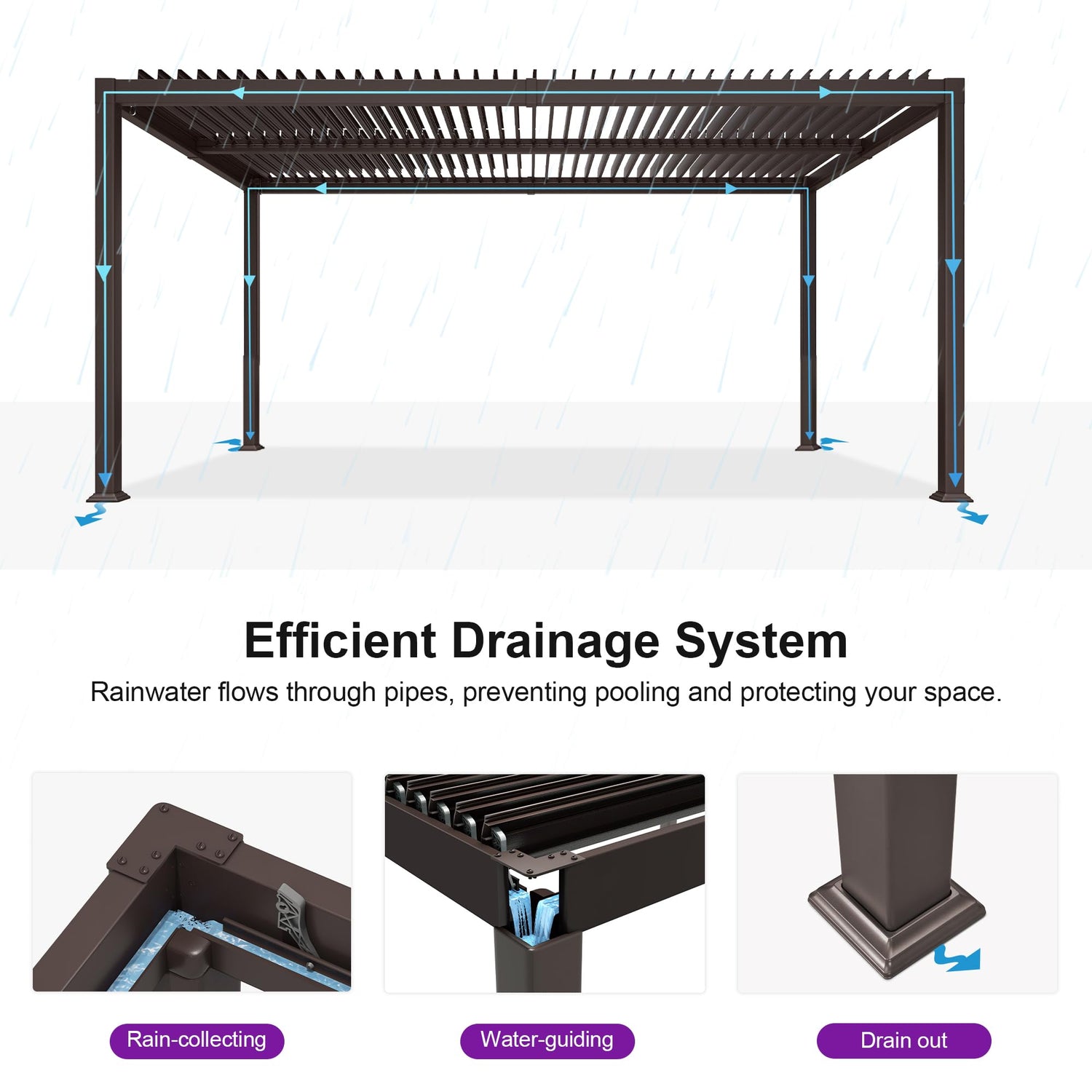 PURPLE LEAF 10' x 16' Louvered Pergola Outdoor Adjustable Louvre Shade Modern Patio Aluminum Pergola with Retractable Roof for Deck Backyard Garden Hardtop Gazebo