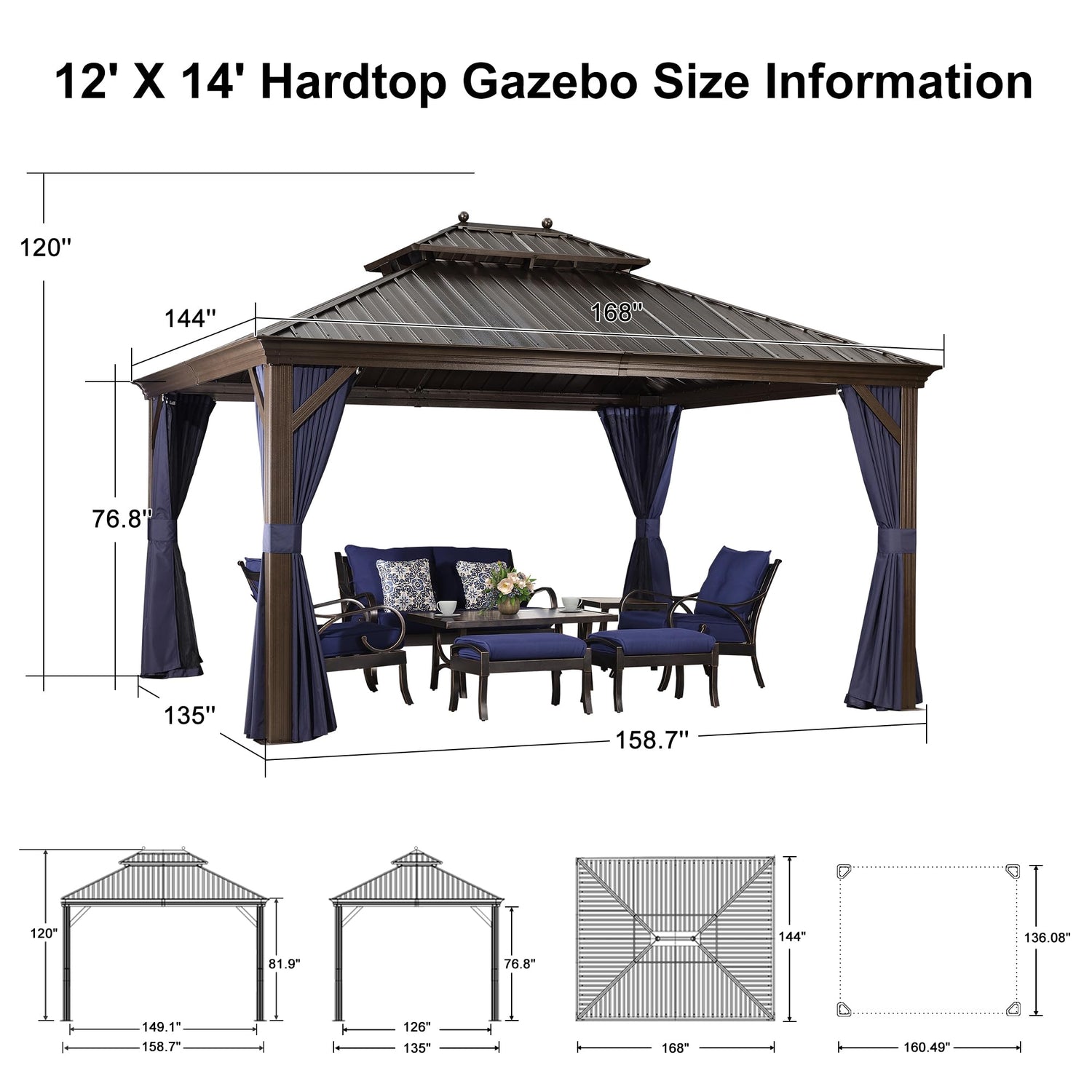 PURPLE LEAF 12' X 14' Hardtop Gazebo Canopy with Curtains and Netting for Patio Deck Backyard Heavy Duty Sunshade UV Protection Metal Outdoor Permanent Pavilion