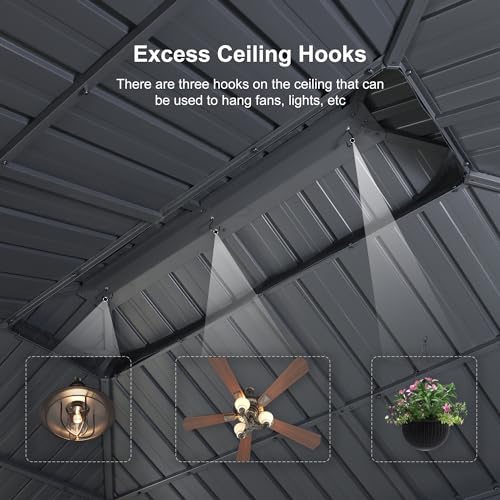 - 【Ceiling Hooks】Comes with built-in, high-quality, sturdy ceiling hooks designed to easily hang your favorite chandelier or other decorative items. Outdoor gazebo can easily be transformed into a comfortable and light-filled gathering place to spend precious time with family and friends.