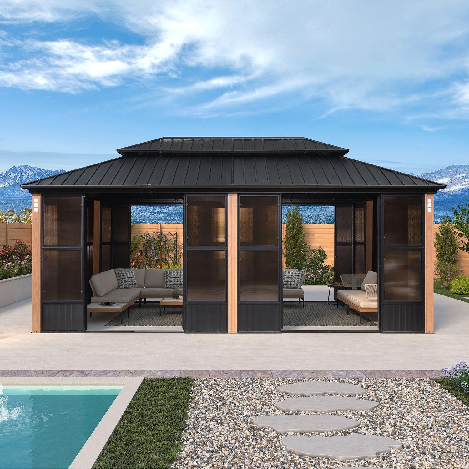 PURPLE LEAF 12' X 20' Sunroom Patio Hardtop Gazebo Double Top Galvanized Steel Roof Outdoor Screen House Aluminum Solarium Backyard Sun Room