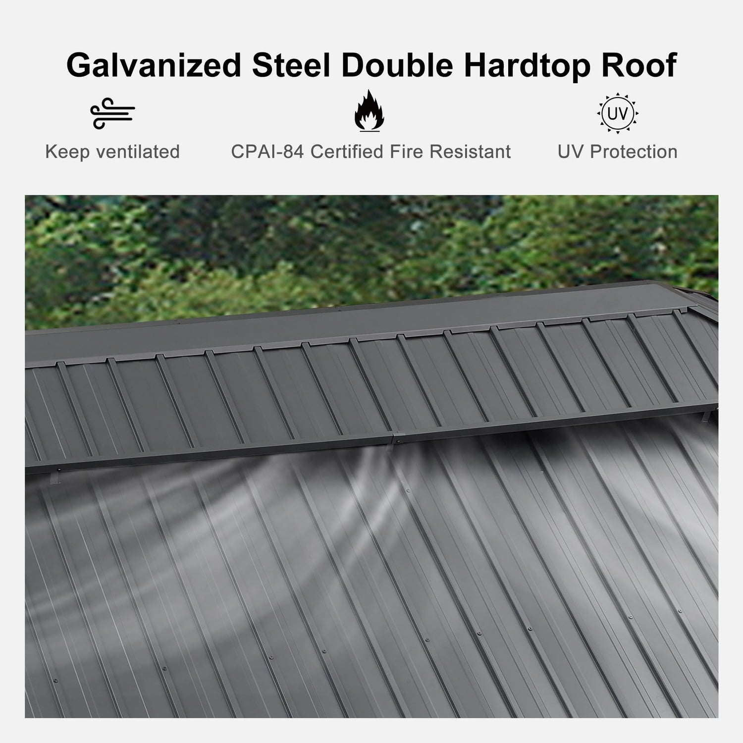 - High-quality Materials: Built with a galvanized steel roof and powder-coated aluminum frame with pre-drilled holes base, designed for sturdy installation, offers stability in windy conditions.