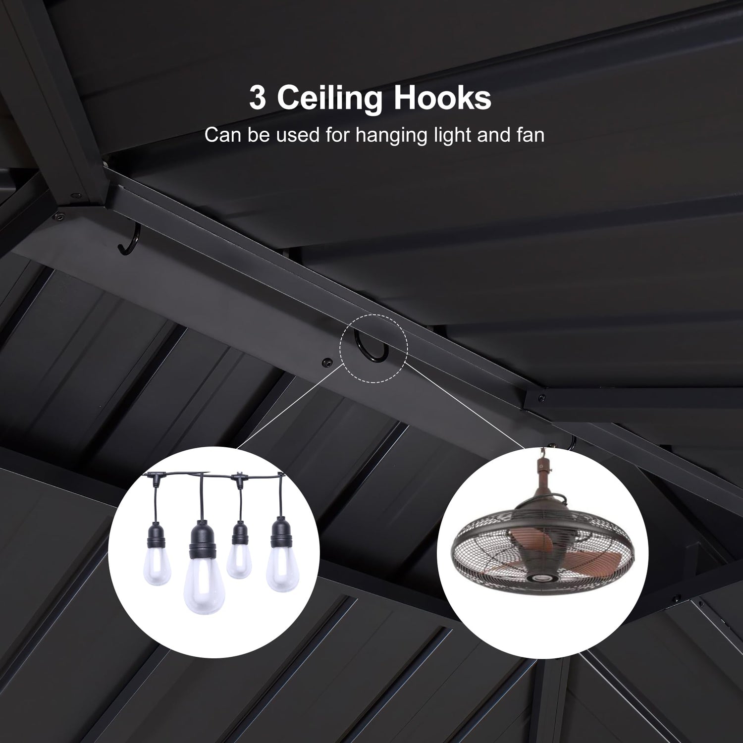 - Stable Structure: Built with 3"x3" triangular stand pole, you can install this hardtop gazebo easily on any kind of floor.