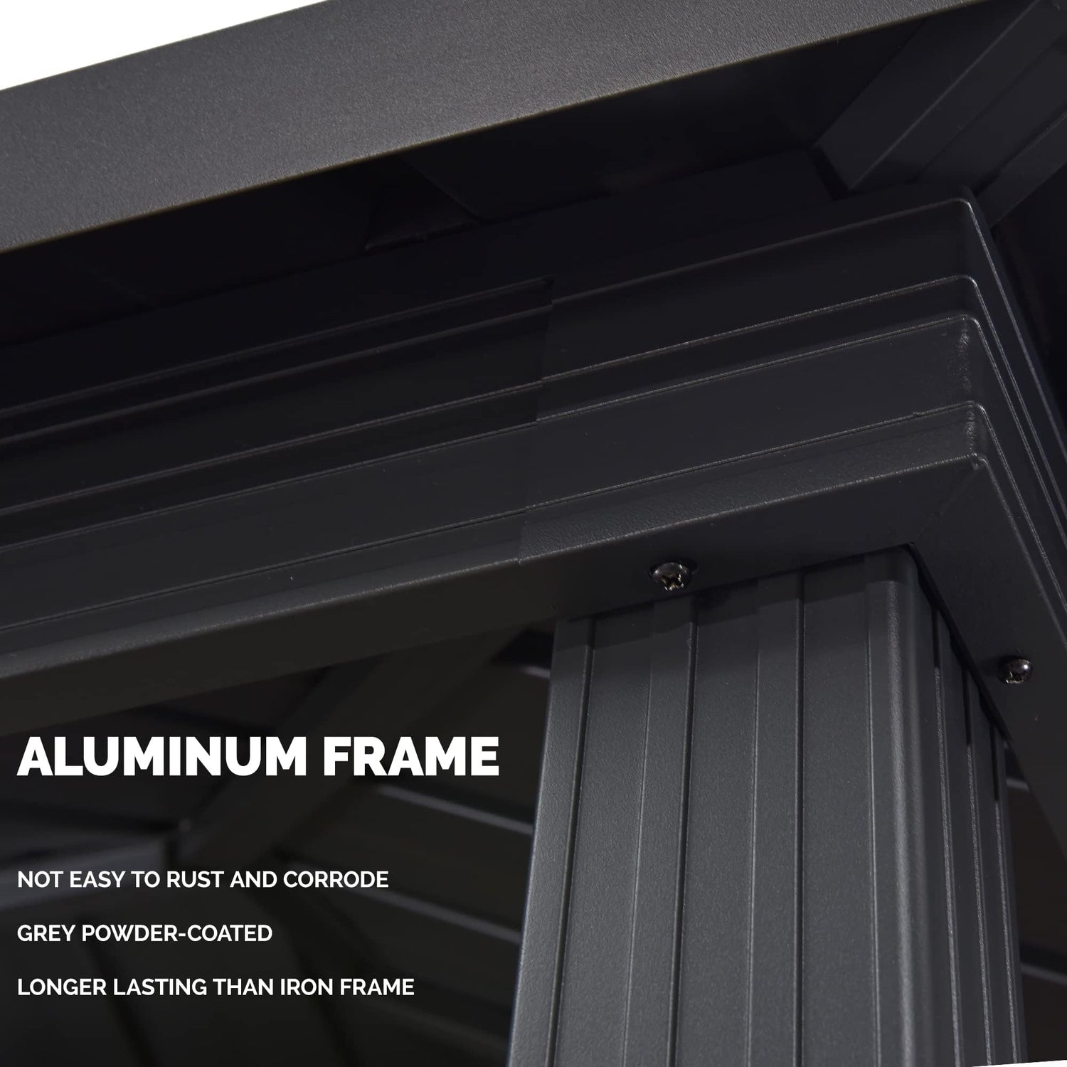 - Sturdy Aluminum Frame: Powder-coated aluminum frame which resists rust. This BBQ gazebo is durable and can be used outdoors for a long time.