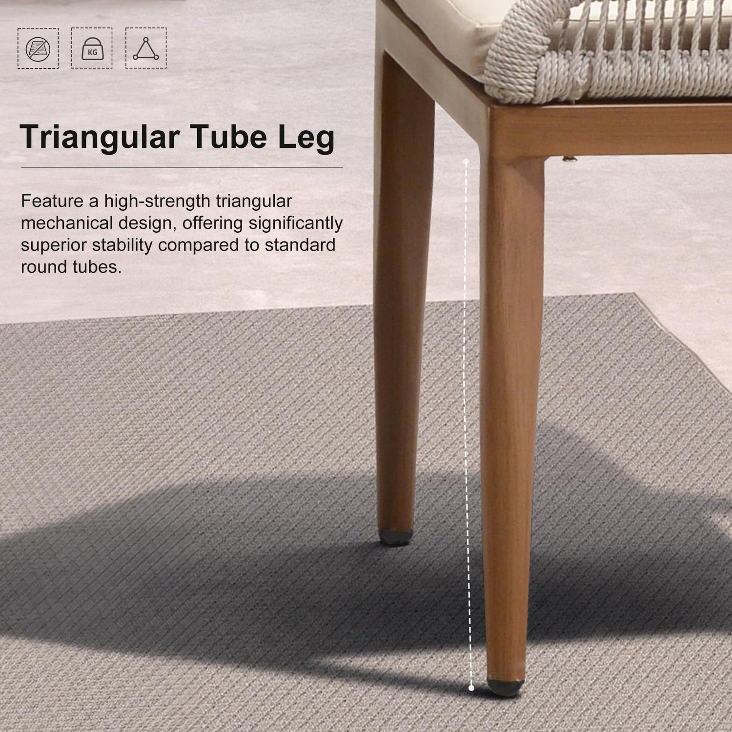 - Sturdy Structure: Constructed with a premium rust resistant powder coated aluminum frame. The dining set features thick table legs and triangular tube structured dining chairs, ensuring stability and durability.