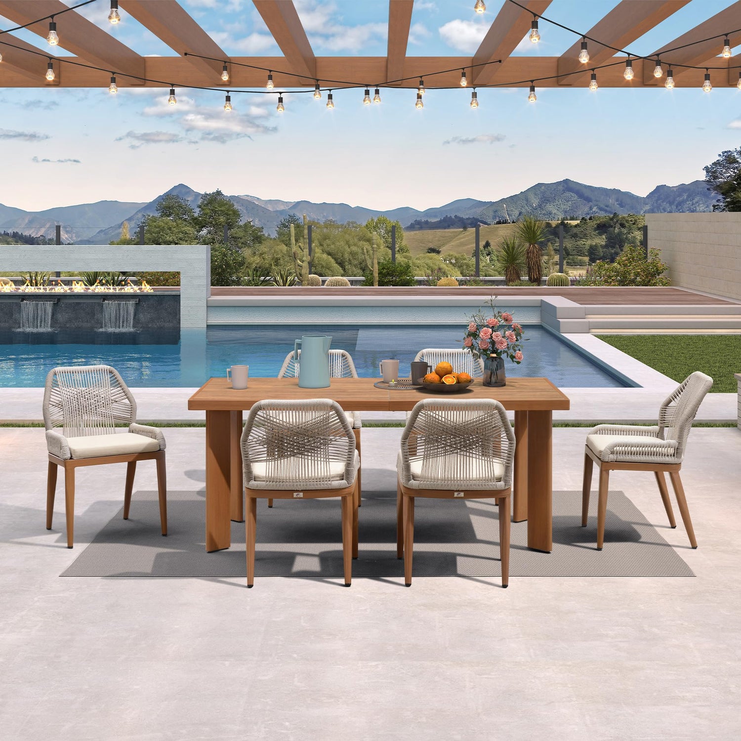 - Modern Boho Style: Flaunting simple, sleek lines, the handwoven cross - rattan chairs team up with a deep teak rectanglular table. Whether for indoor living rooms or outdoor spots, it crafts a snug and stylish environment.