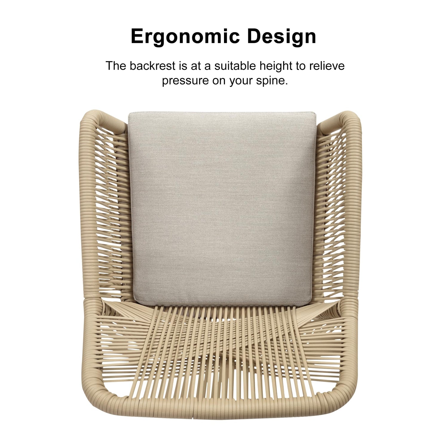 - PE Rattan Backrest: The chairs are thoughtfully designed with a PE rattan backrest, providing both style and durability. This intricate weaving technique not only adds visual appeal but also ensures long-lasting performance.