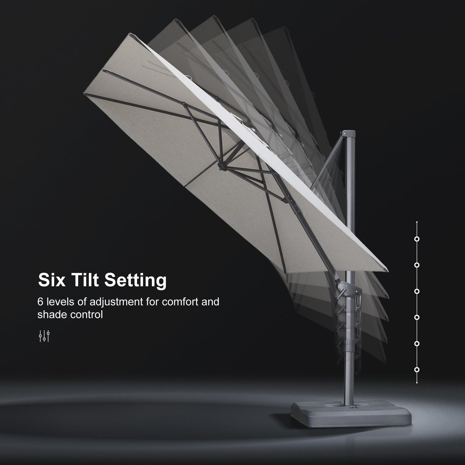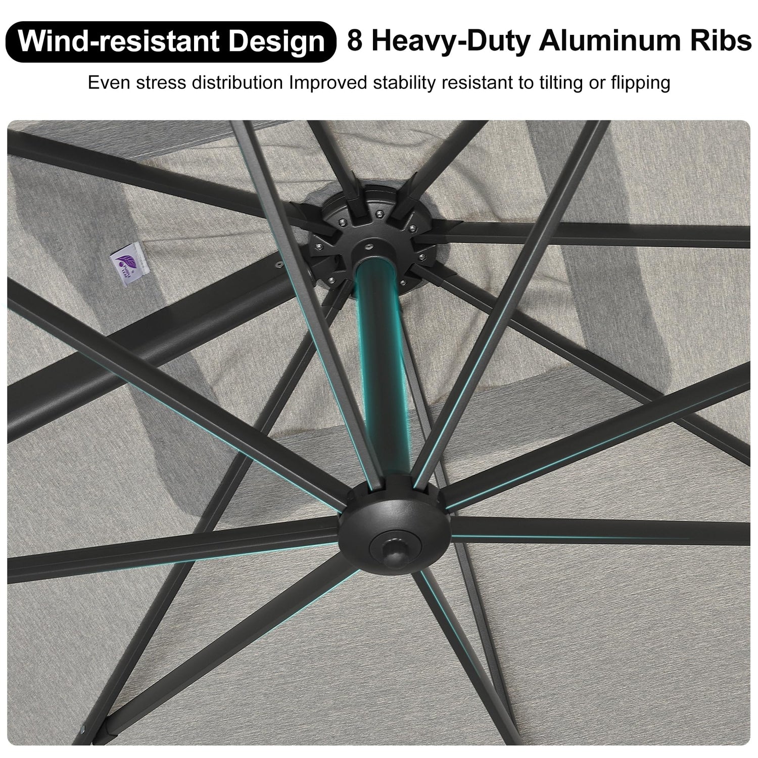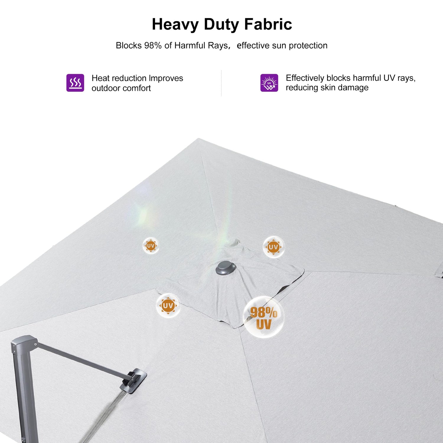 PURPLE LEAF 9 FT Cantilever Patio Umbrella Outdoor Aluminum Offset Square Umbrella with 3 Years Fade Resistance Recycled Fabric and 360-degree Rotation for Deck Pool Garden, Light Grey