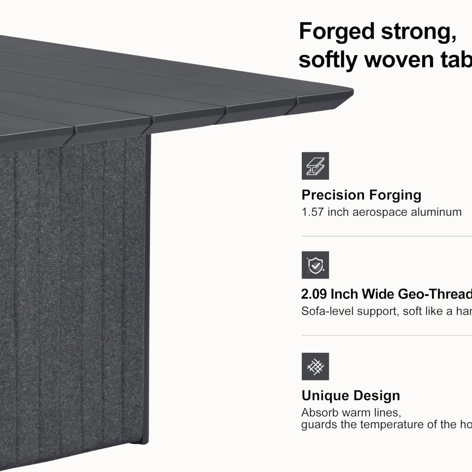 - Artisan Woven Design: Precision-crafted with 2-inch wide woven straps for a sleek, contemporary look. Durable yet lightweight, the textured weave resists sagging while adding tactile elegance to your patio.