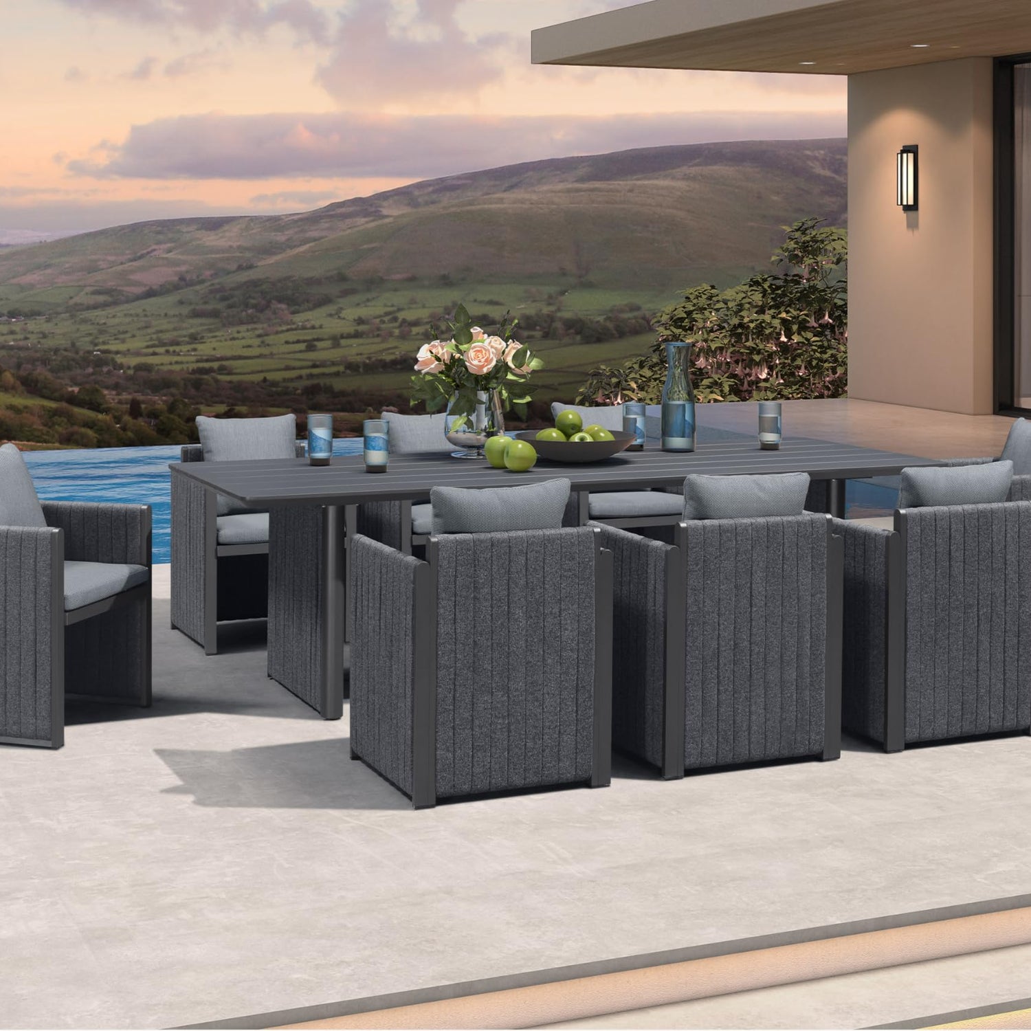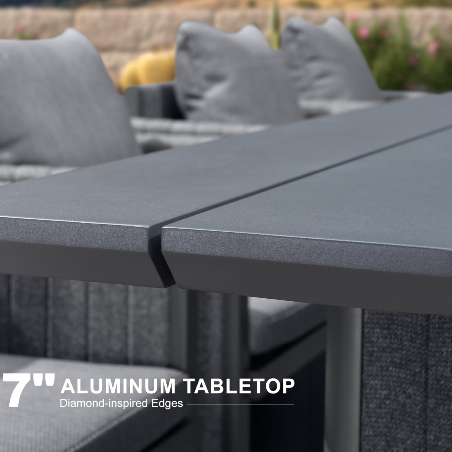 PURPLE LEAF 9 Pieces Outdoor Patio Dining Set Modern Large Weather-Resistant Table and Aluminum Chairs with Olefin Fabric Cushions for Family Dinners Indoor Decor Kitchen Grey