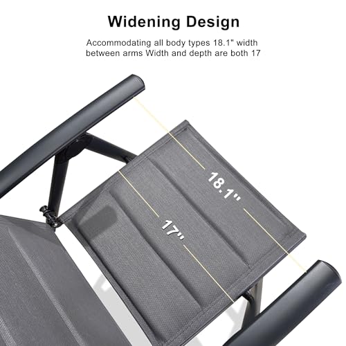 - Best Angel You Ever Enjoy: Through extensive ergonomic statistics, our patio folding chairs are designed with the most appropriate tilt angles (99°, 110°, 117°, 128°, 136°) to ensure the most comfort for dining, resting and other activities experience and relaxation.