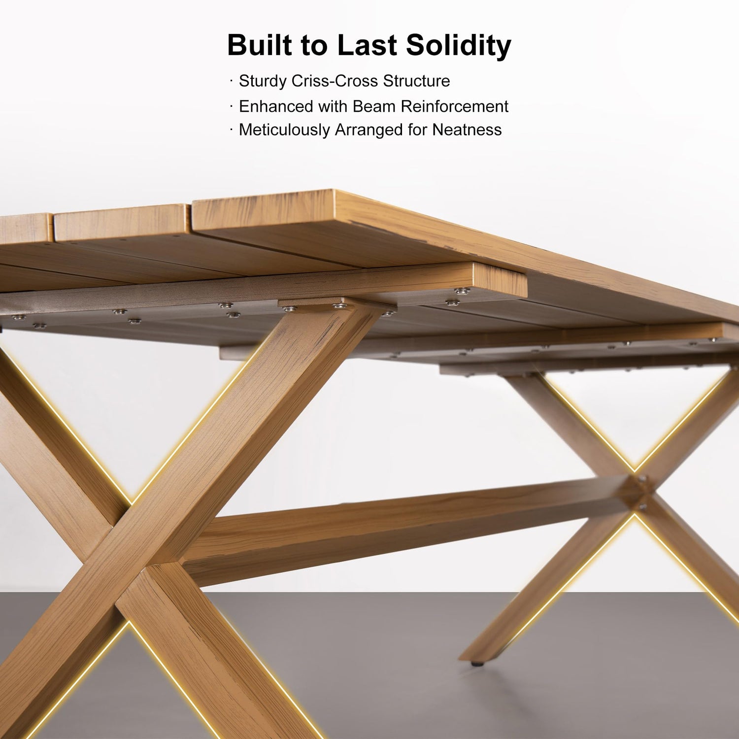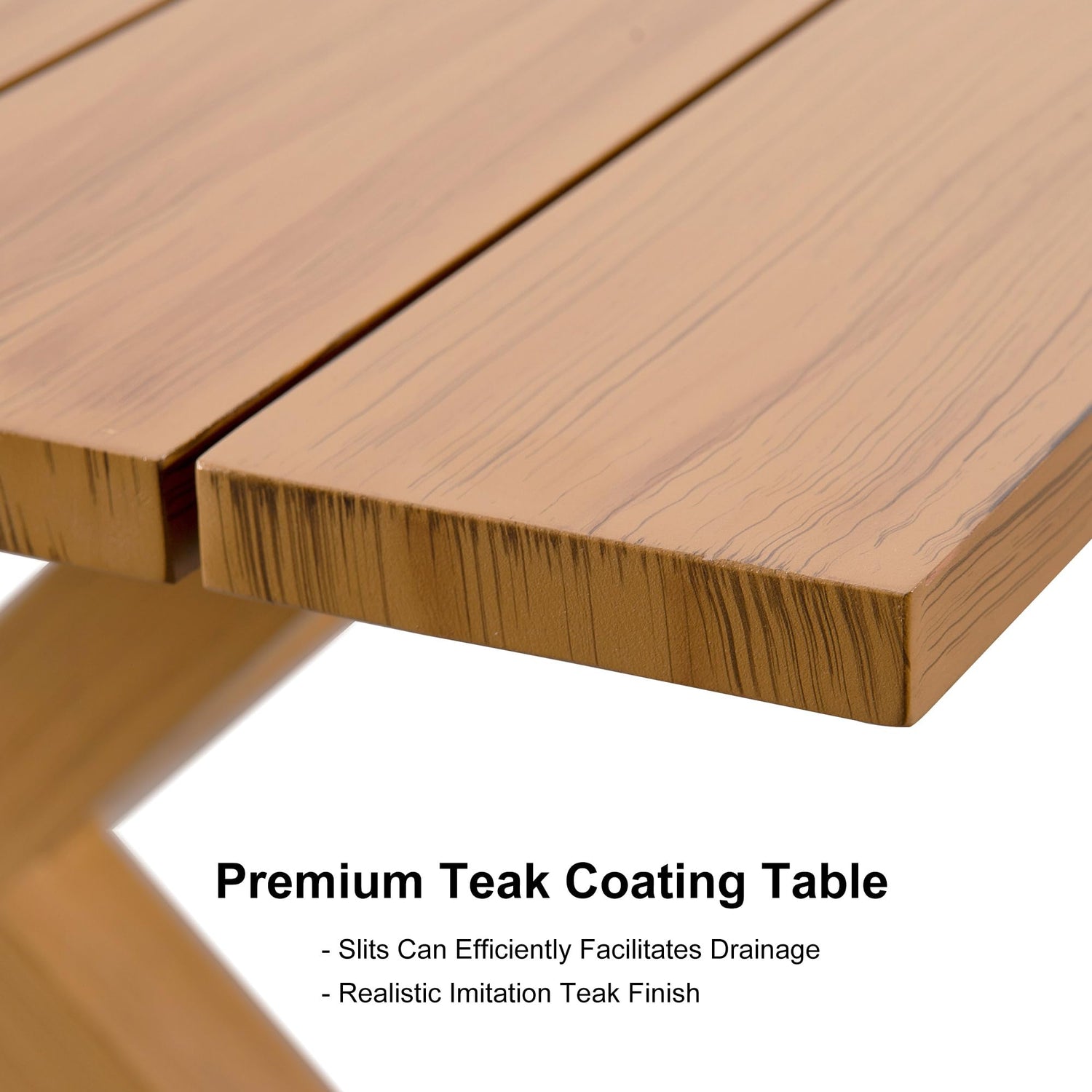 - High-quality materials: Outstanding teak-finish powder-coated aluminum frame and table top are rust-resistance and durable, provide powerful support. The weight capacity of each chair is 350 lbs.
