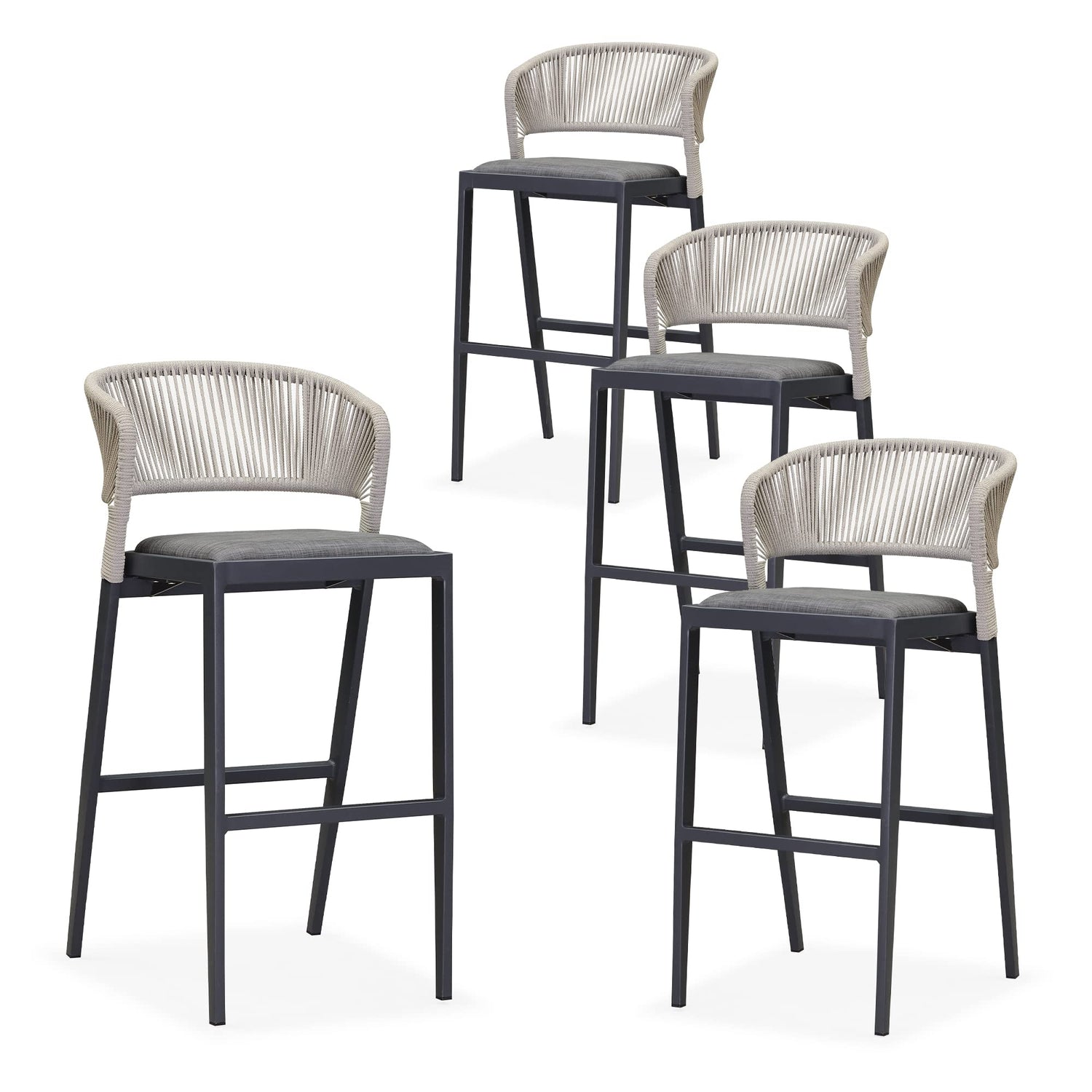 PURPLE LEAF Bar Stool Set of 4 Outdoor Rattan Bar Chair Aluminum Bar Height Stool Barstool Dark Grey