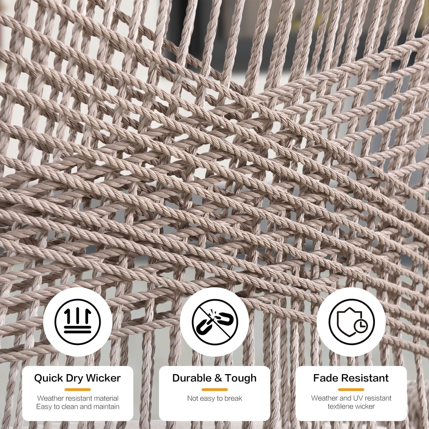 - All-Weather Use Rope: Made of weather and UV resistant Textilene wicker, this stool set is perfect for long-term outdoor use.