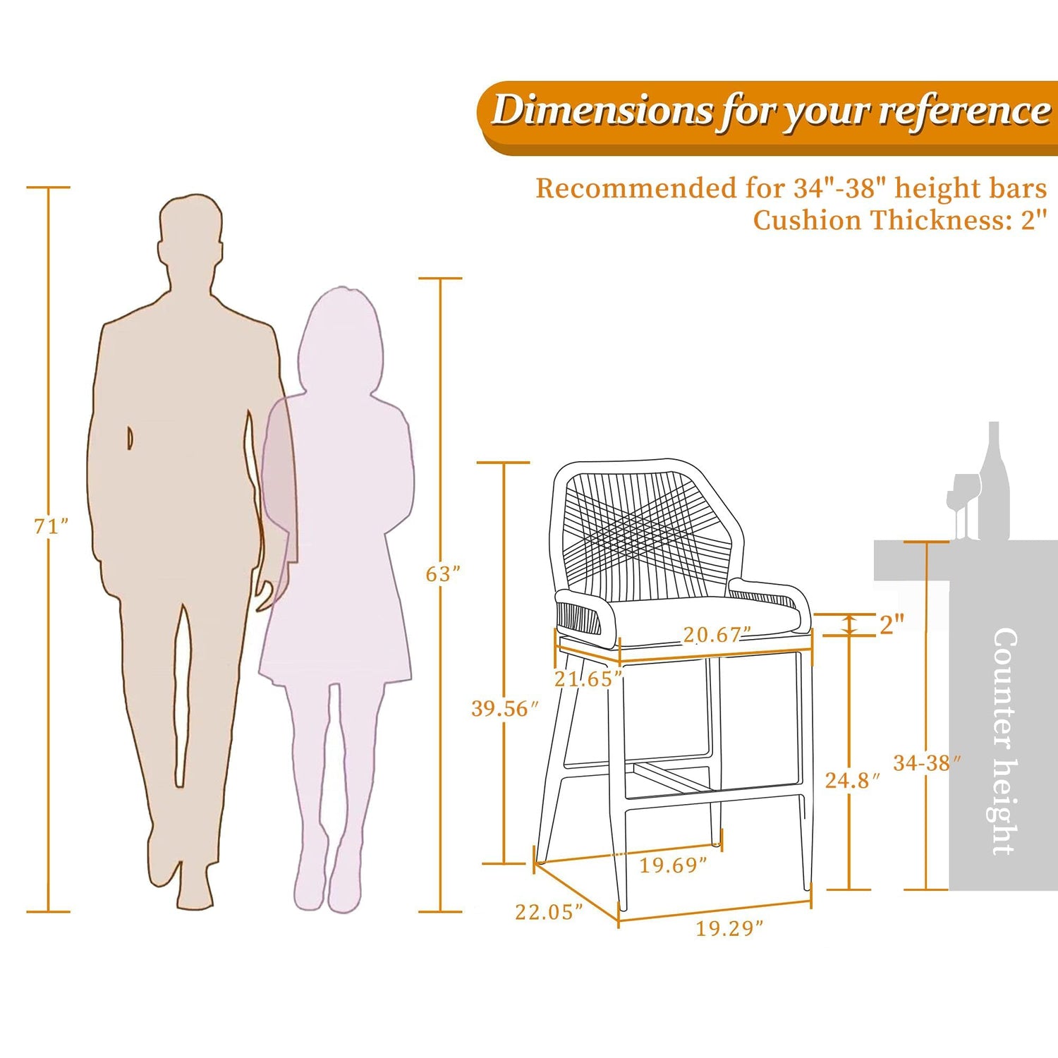 - Product Size: 4-piece bar stool (21.65"D x 20.67"W x 39.56"H), 24.8" height seat is suitable for a 34" - 38" height counter. Each chair can hold up to 330 pounds.