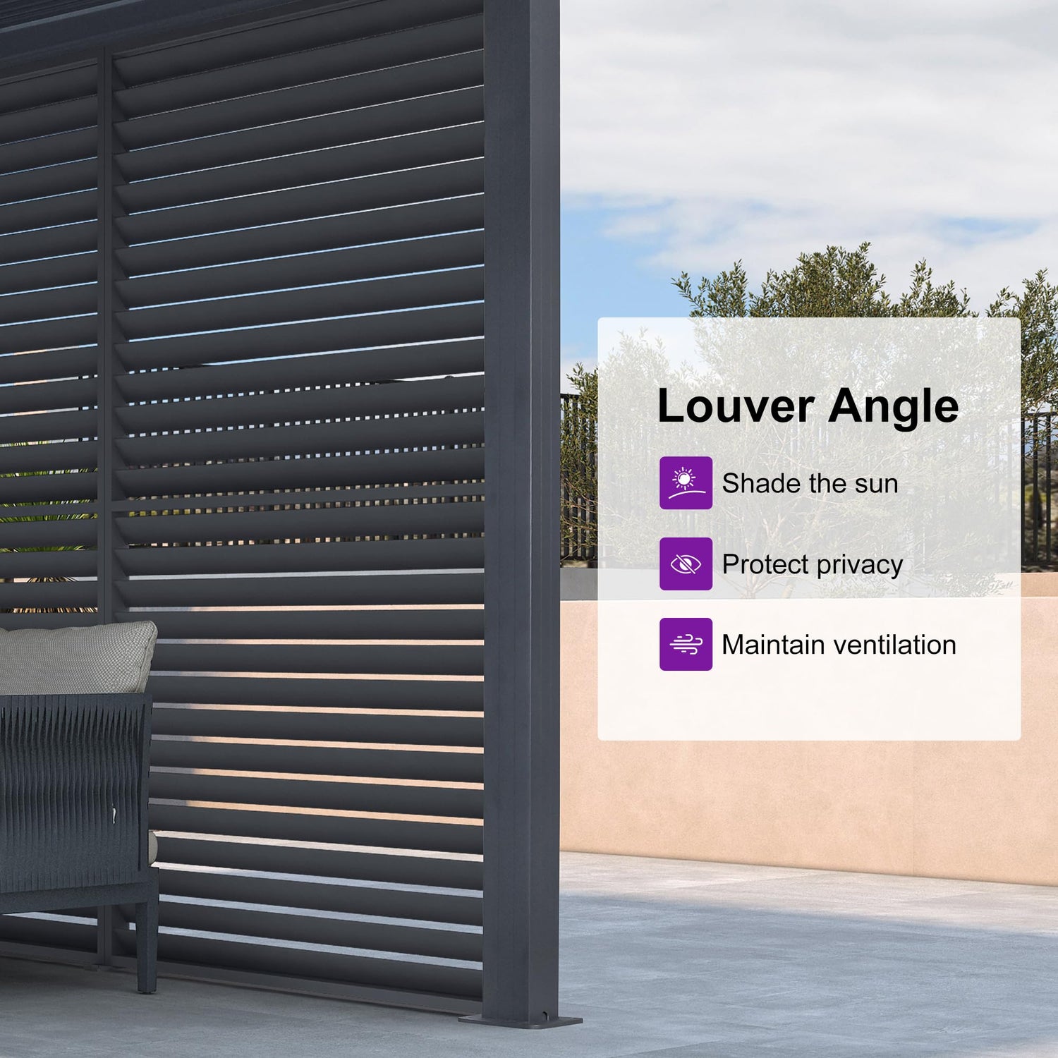 PURPLE LEAF Louvered Pergola Accessory 94AS Aluminum Louver Grille for Optimal Privacy, Sunlight Control Four Panels a Complete 13' Side Fixed Shutter Wall, Pergola Not Included